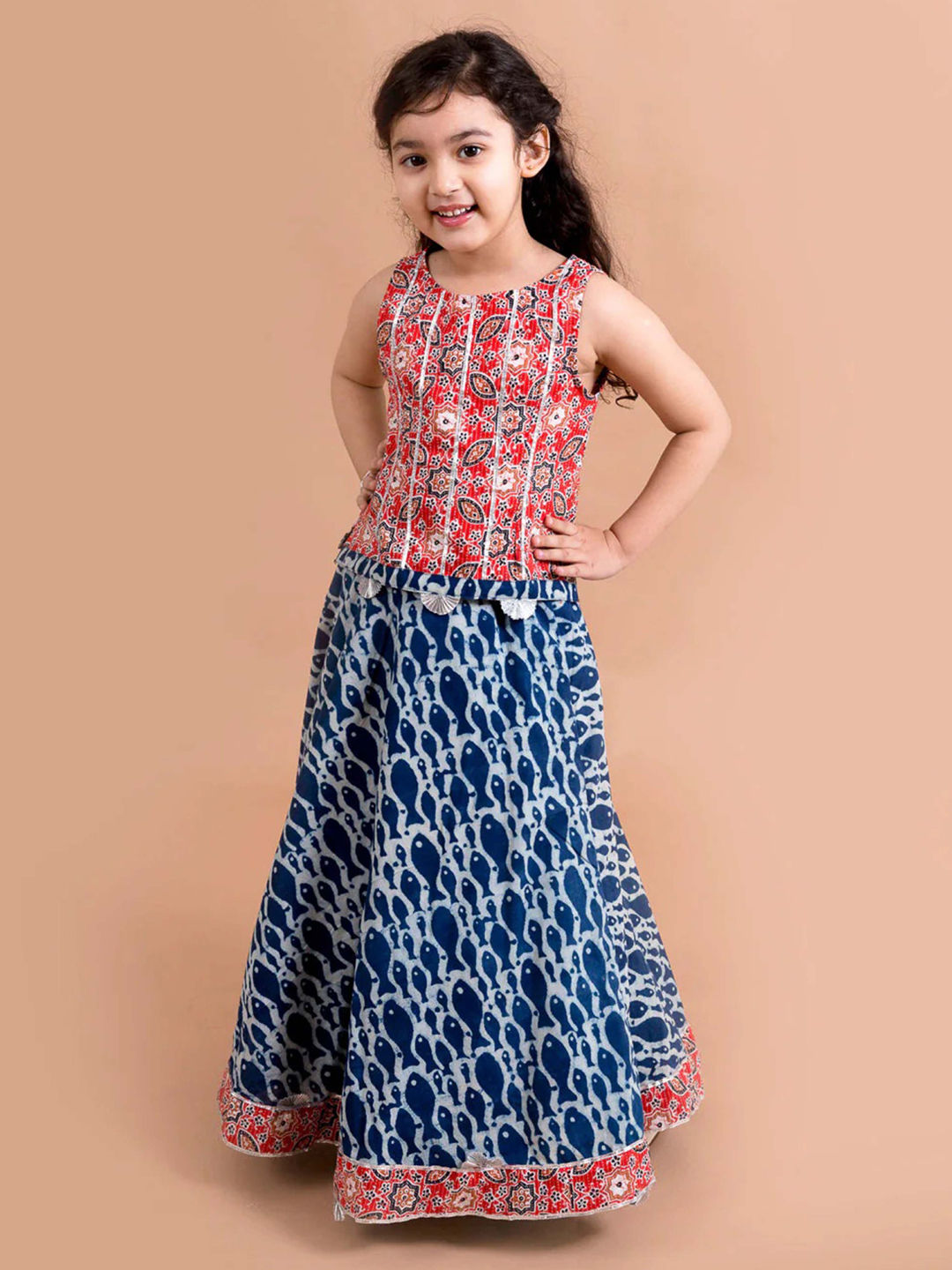 Multicolor color Kids Lehenga in Cotton fabric with Floral, Lace, Printed work