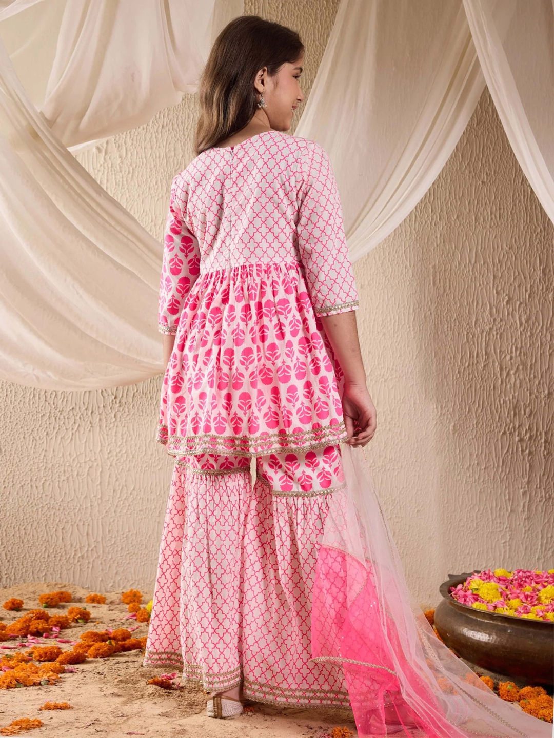 Pink and Majenta color Kids Salwar in Cotton fabric with Lace, Printed work