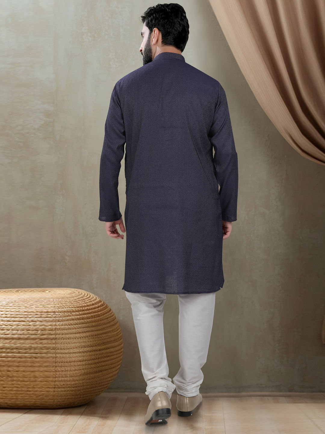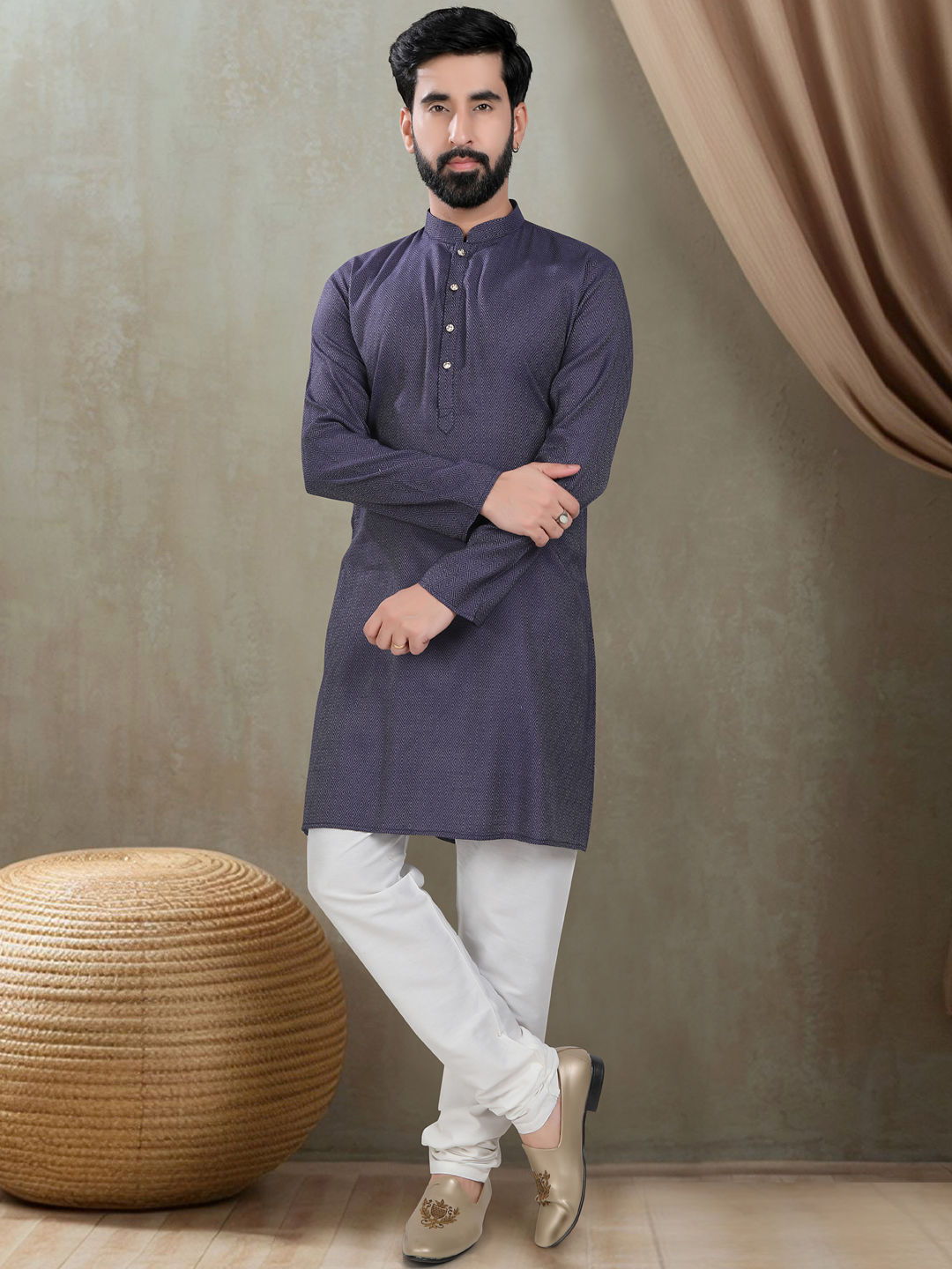 Silk cotton Wedding Kurta Pyjamas in Black and Grey with Printed work