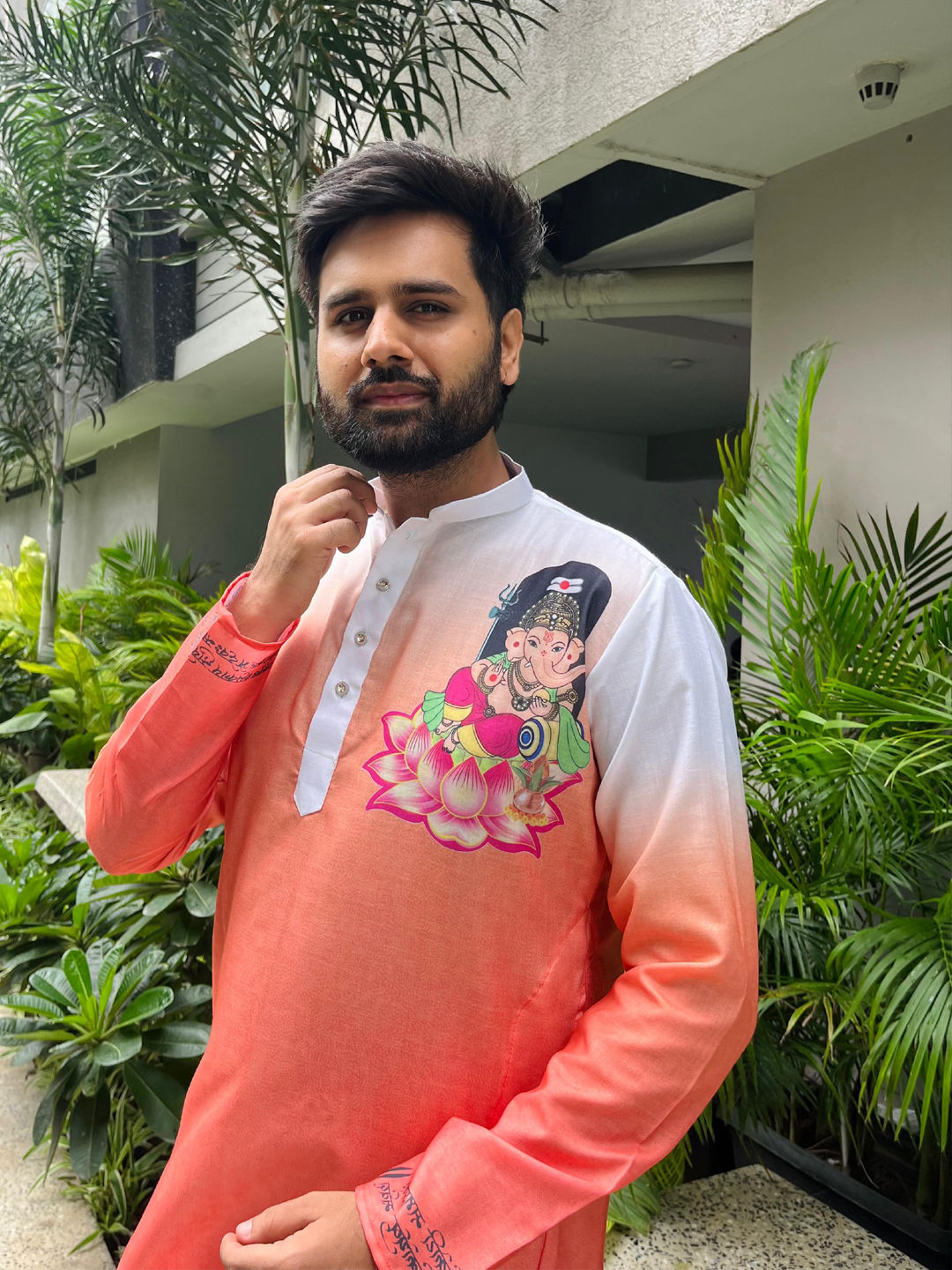 Cotton Festive Kurta Pyjamas in Pink and Majenta with Digital Print work