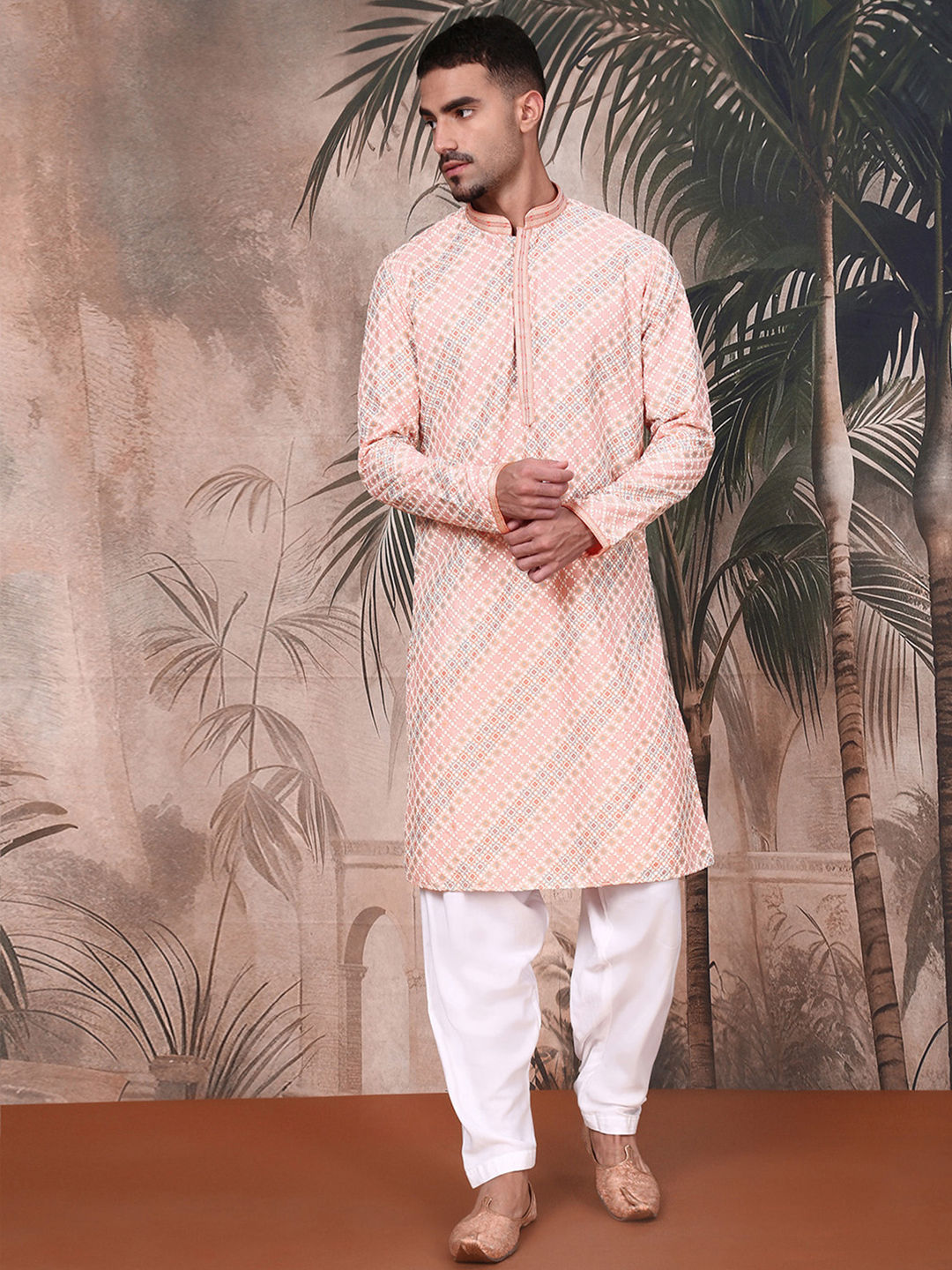 Pink and Majenta color Kurta Pyjamas in Cotton fabric with Sequence work