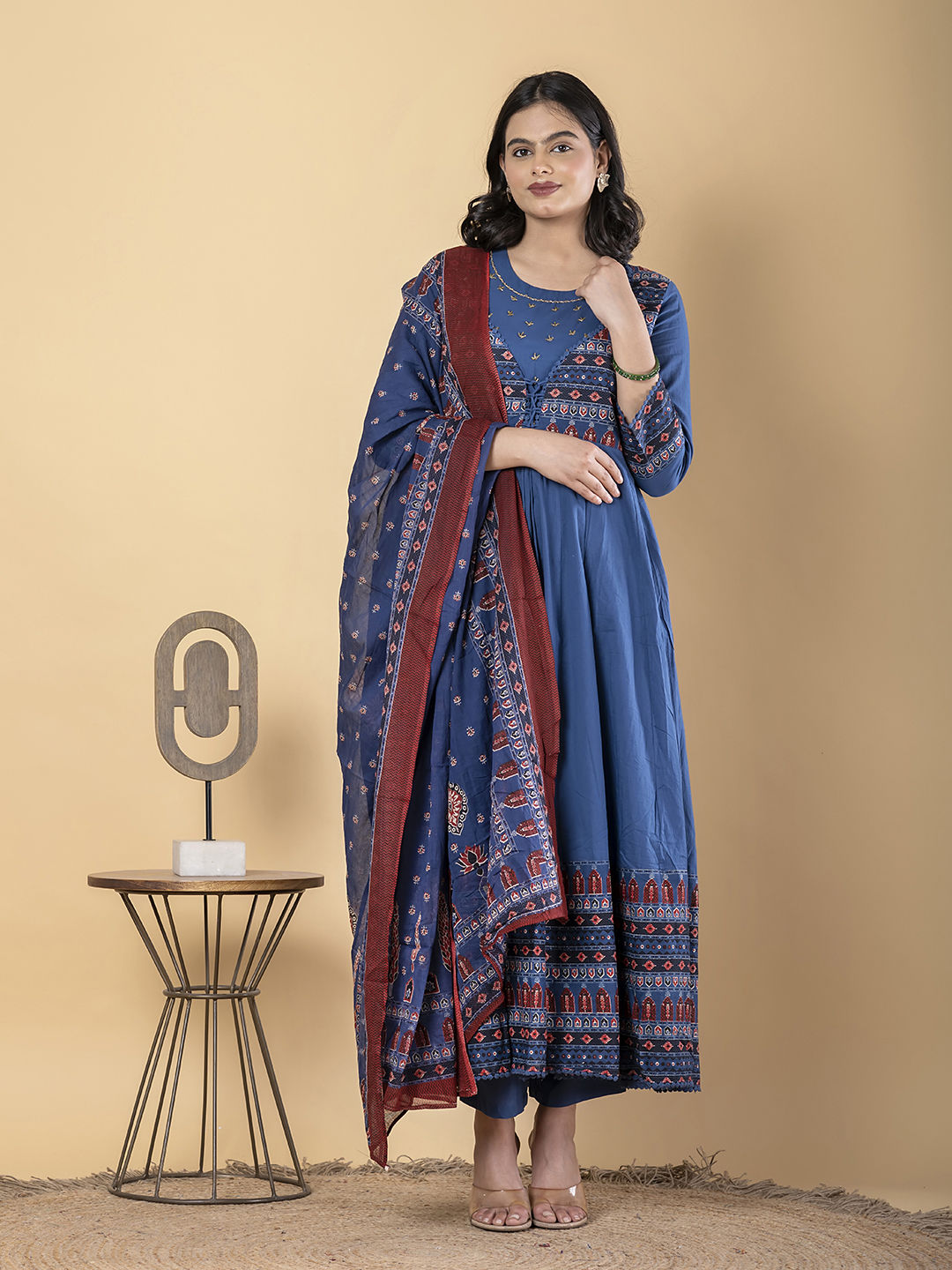 in Blue with Printed work