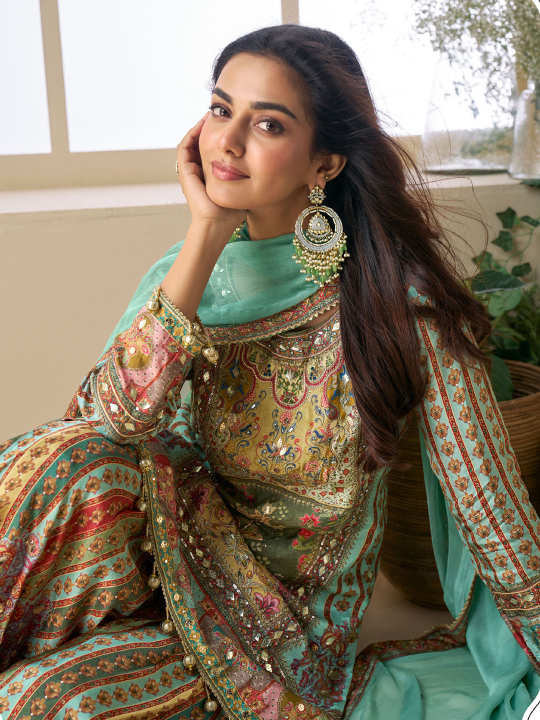 Crepe Silk Wedding Salwar Kameez in Multicolor with Printed work