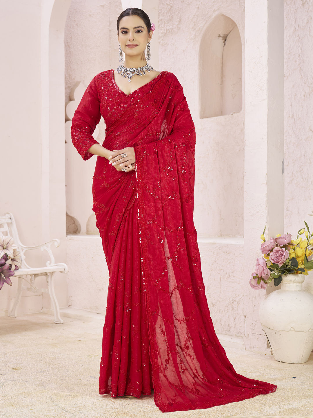 in Red and Maroon with Embroidered work