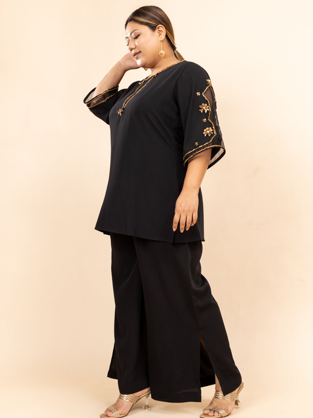 Black and Grey color Co-ords Set in Crepe Silk fabric with Bugle Beads work
