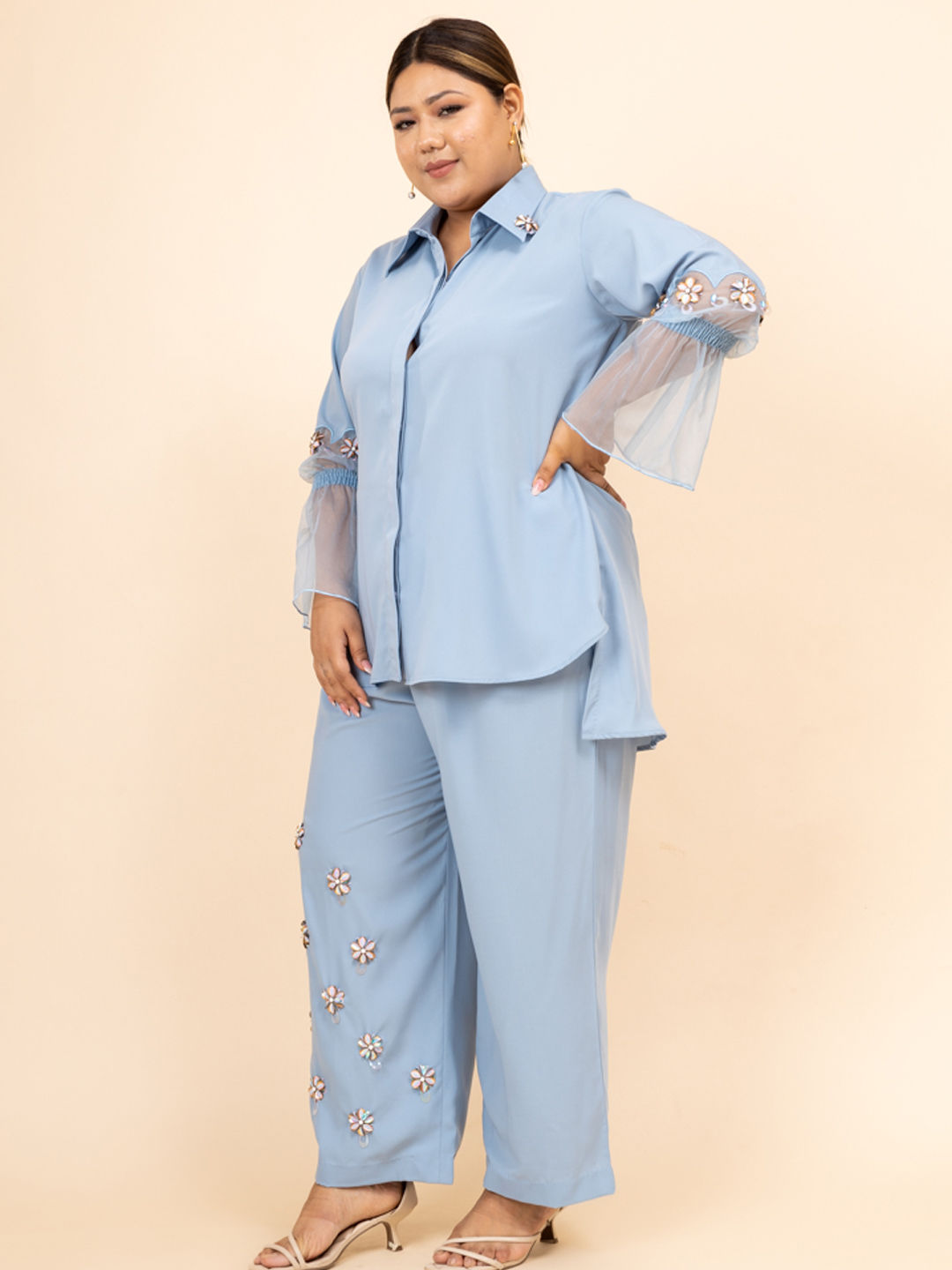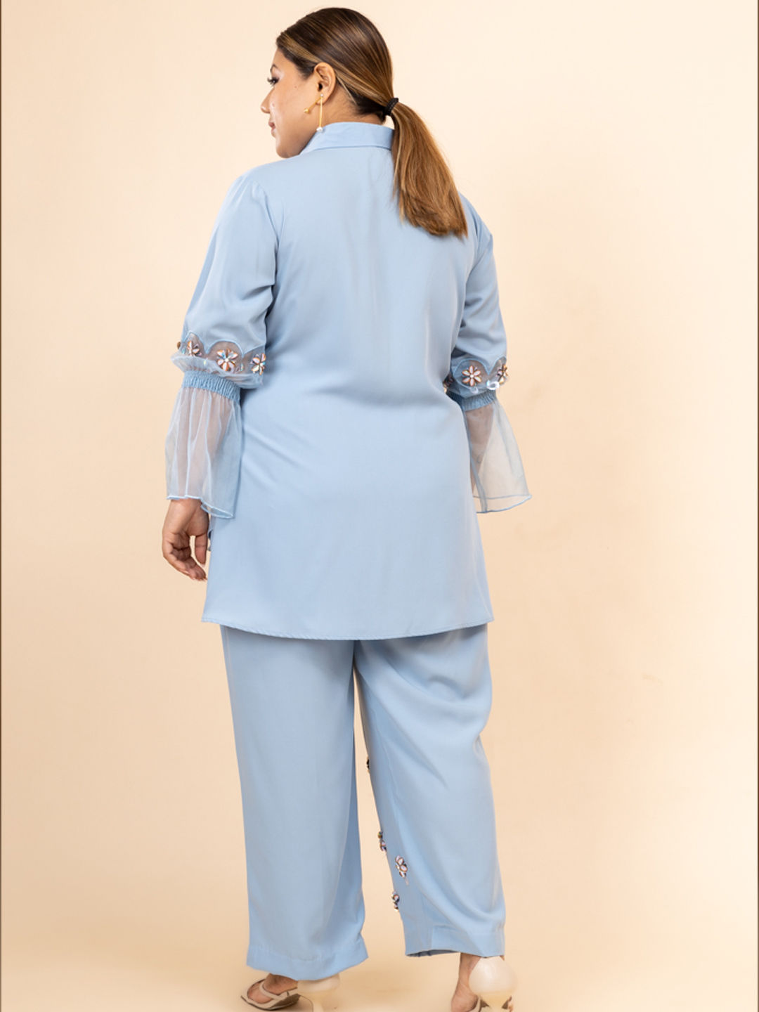 Crepe Silk Casual Co-ords Set in Blue with Bugle Beads work