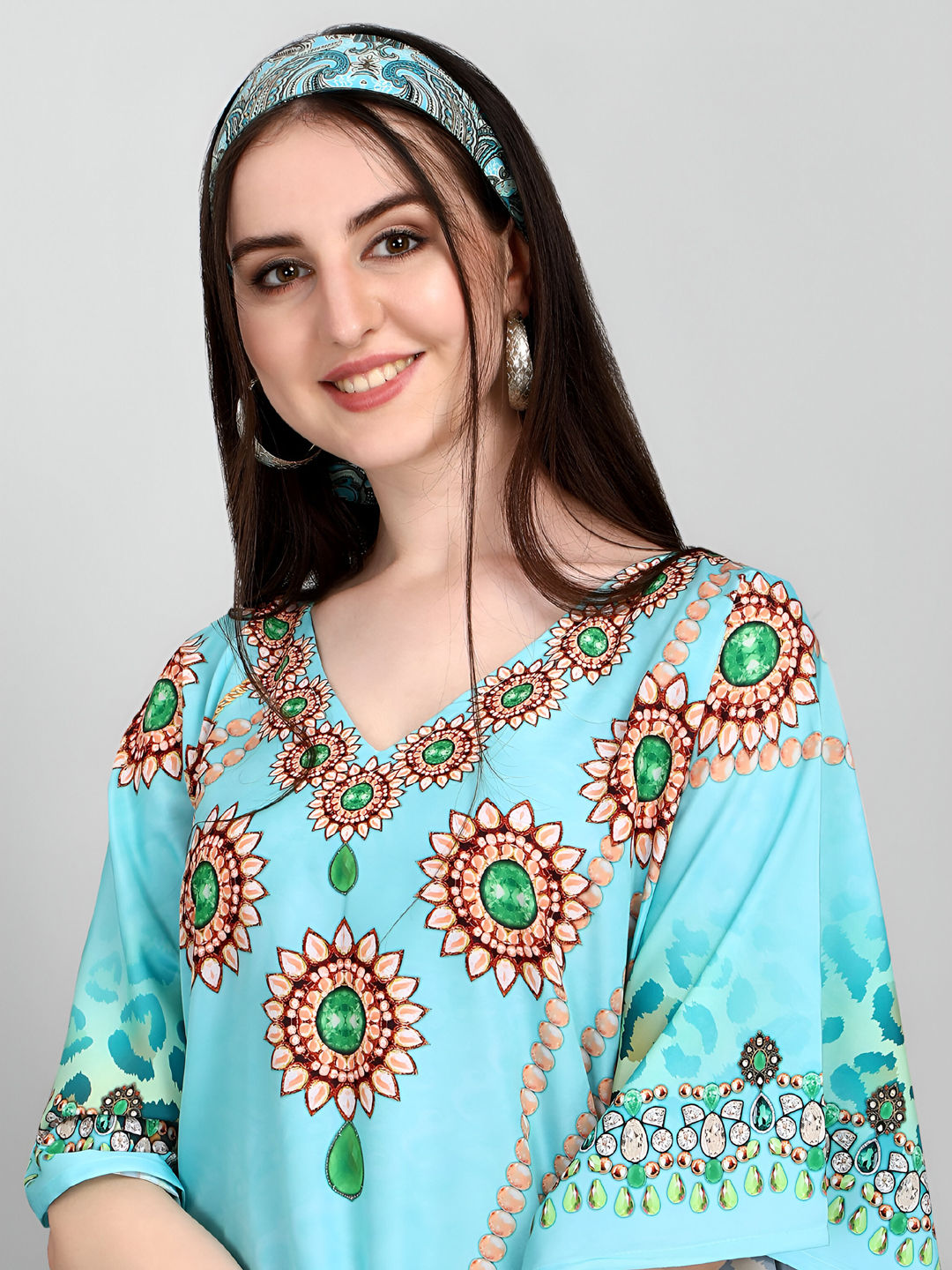 Crepe Silk Casual Kaftan in Blue with Stone work