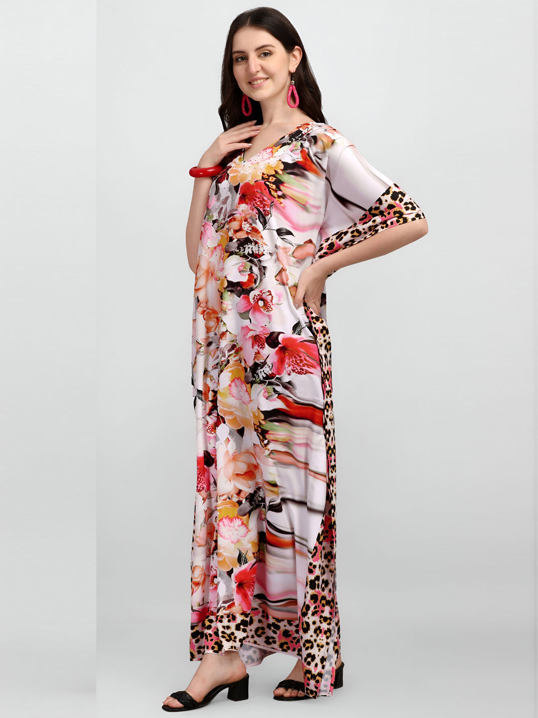 Crepe Silk Casual Kaftan in Multicolor with Digital Print work