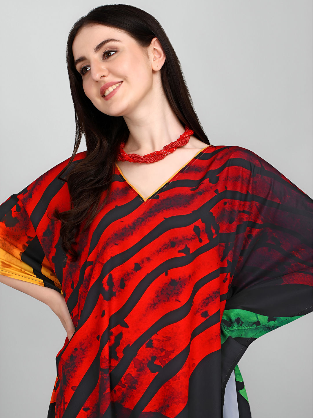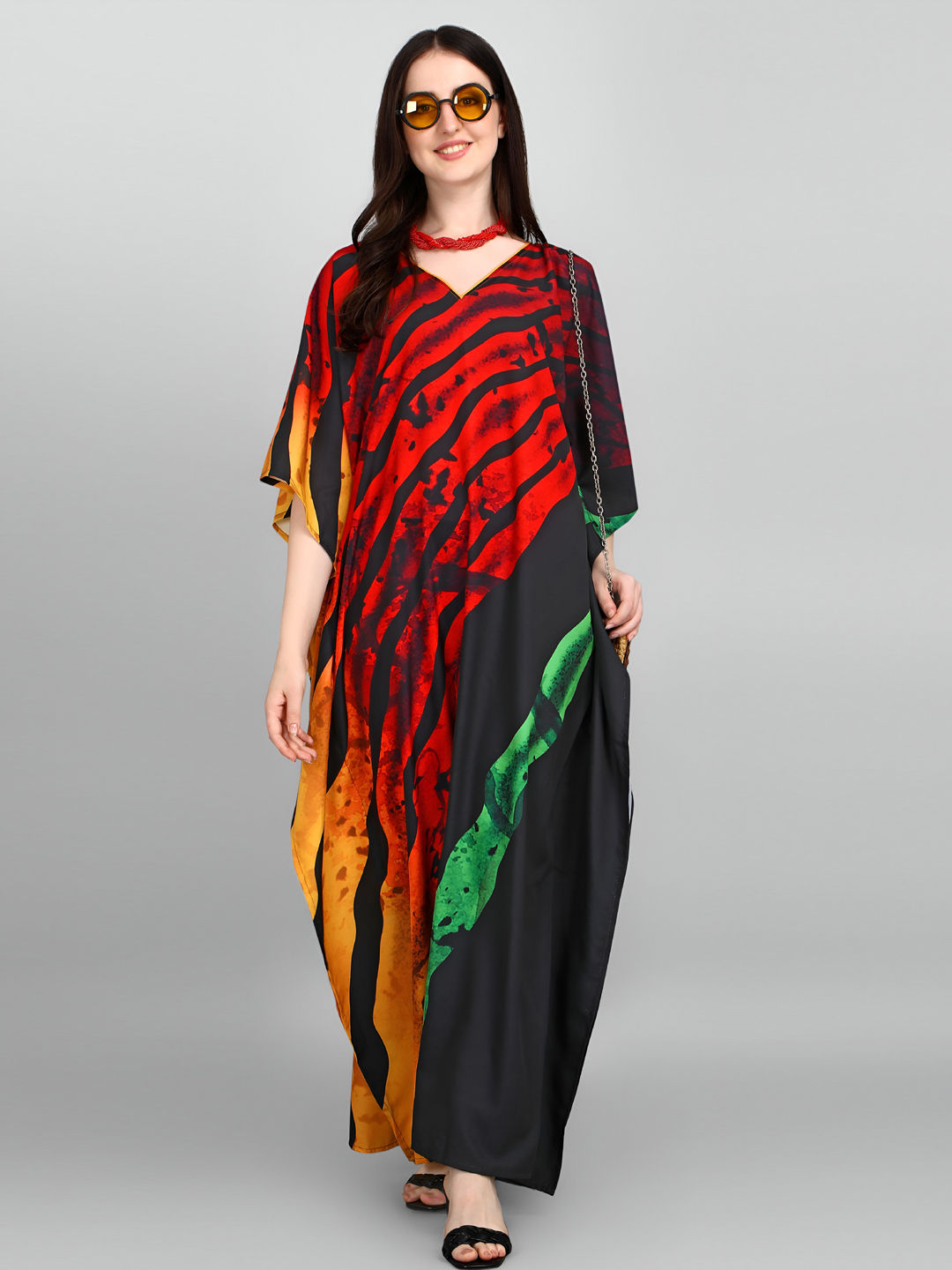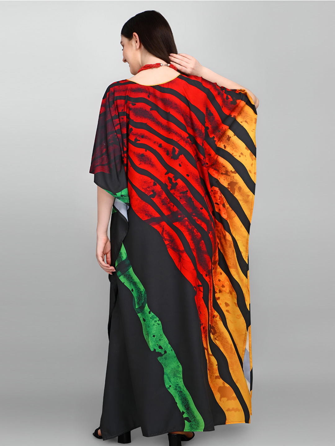 Multicolor color Kaftan in Crepe Silk fabric with Digital Print, Stone work
