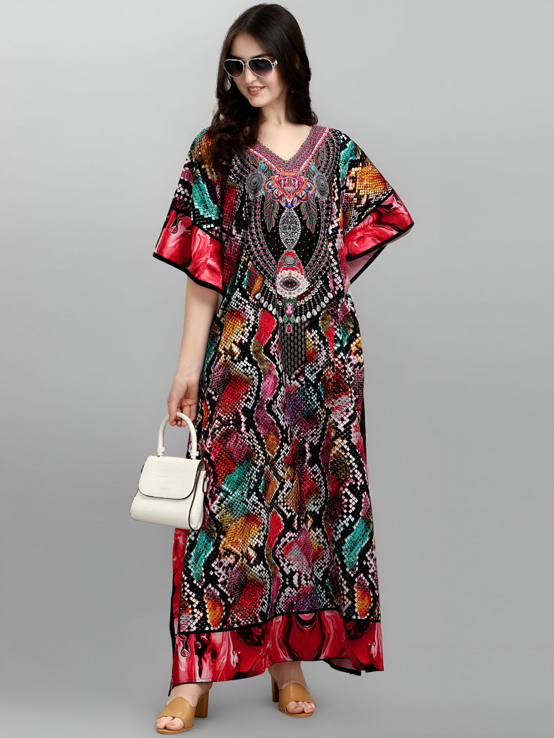 Multicolor color Kaftan in Crepe Silk fabric with Printed work