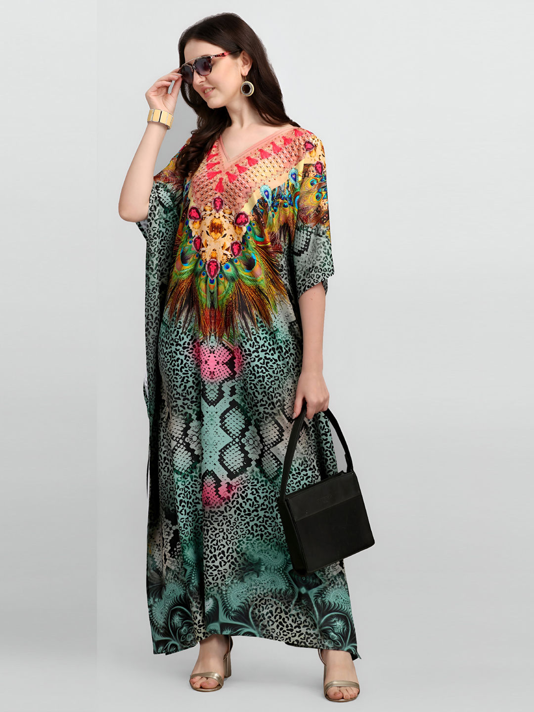 Multicolor color Kaftan in Crepe Silk fabric with Digital Print, Stone work