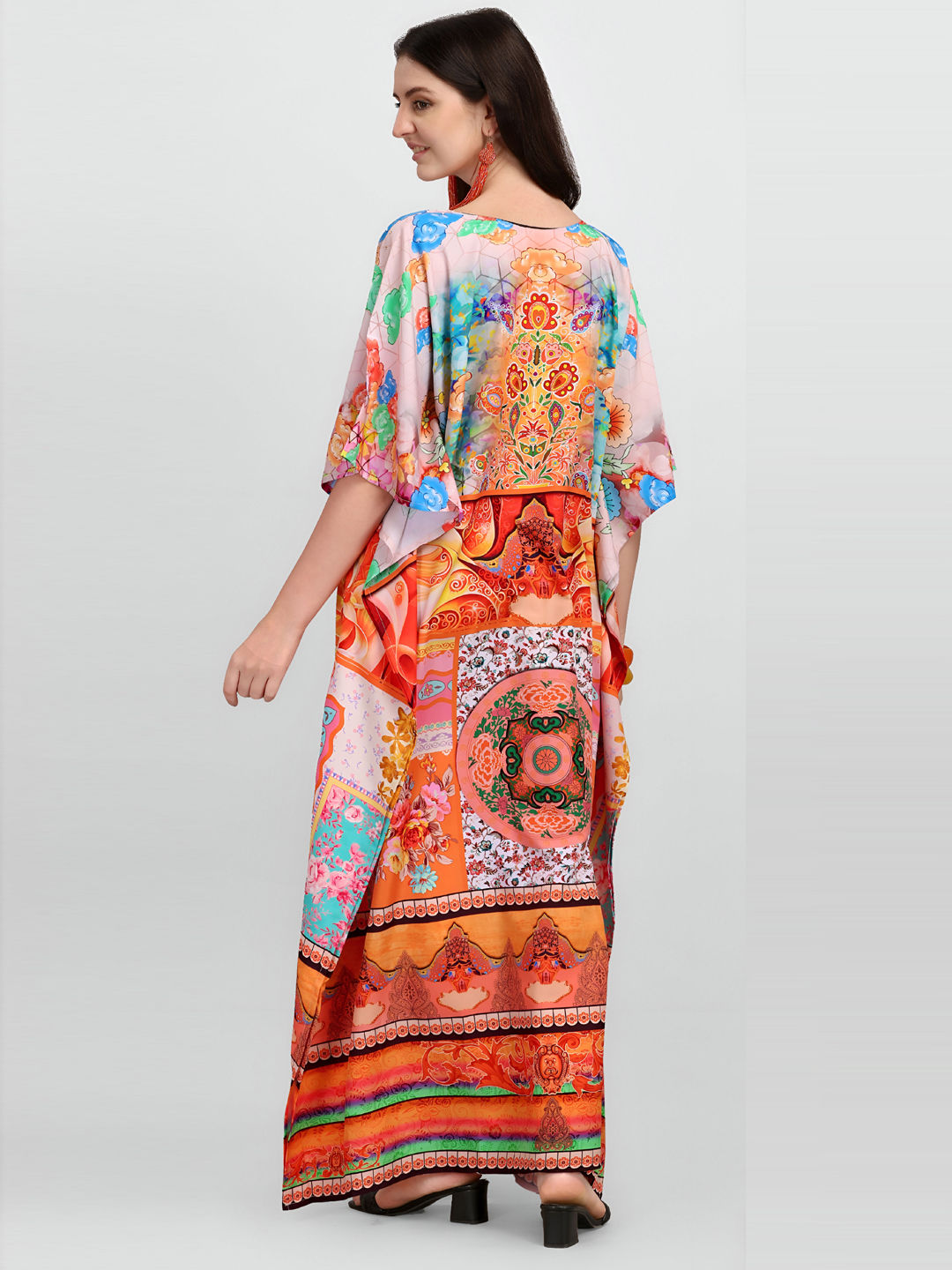 Multicolor color Kaftan in Crepe Silk fabric with Digital Print, Stone work