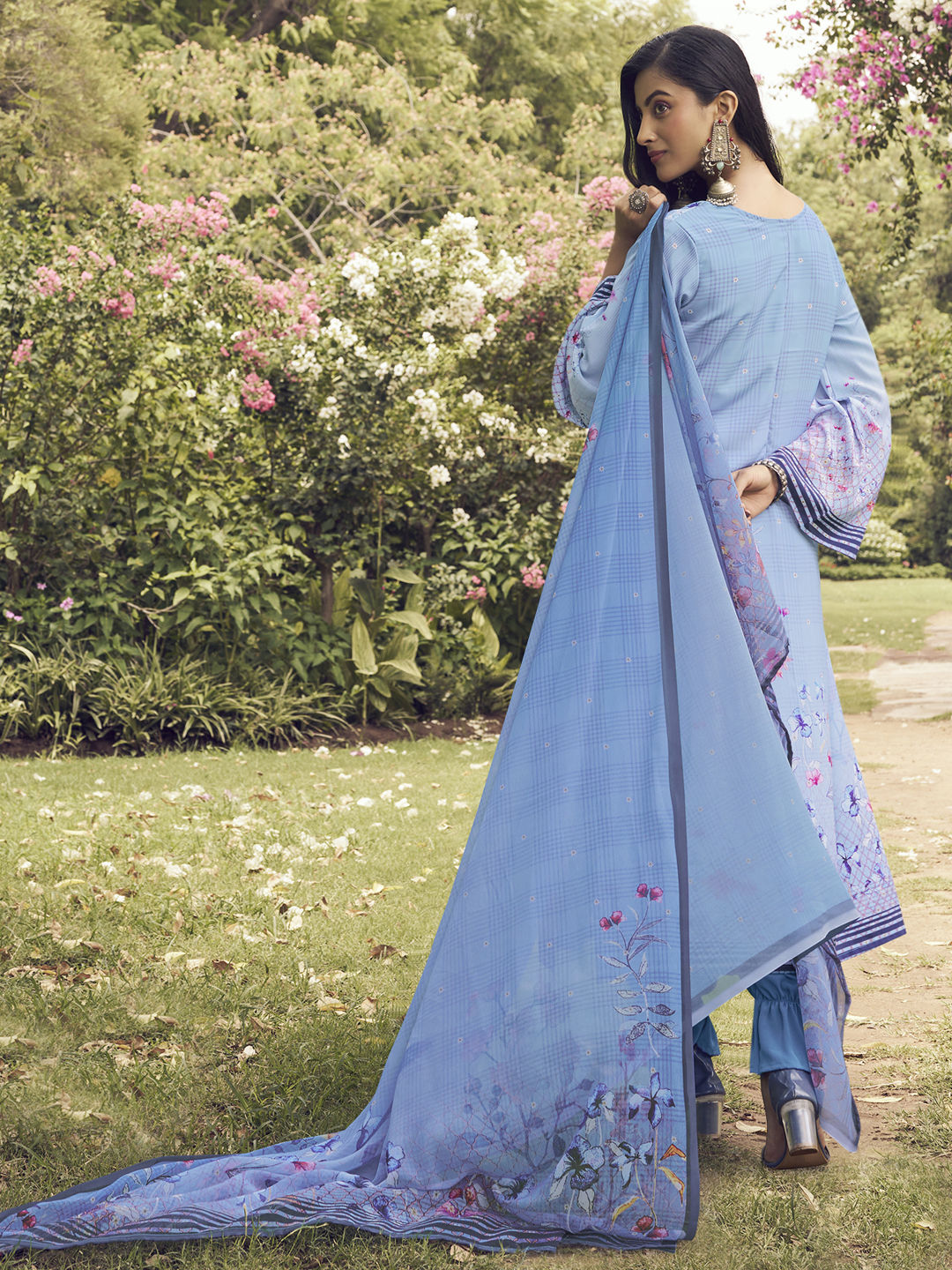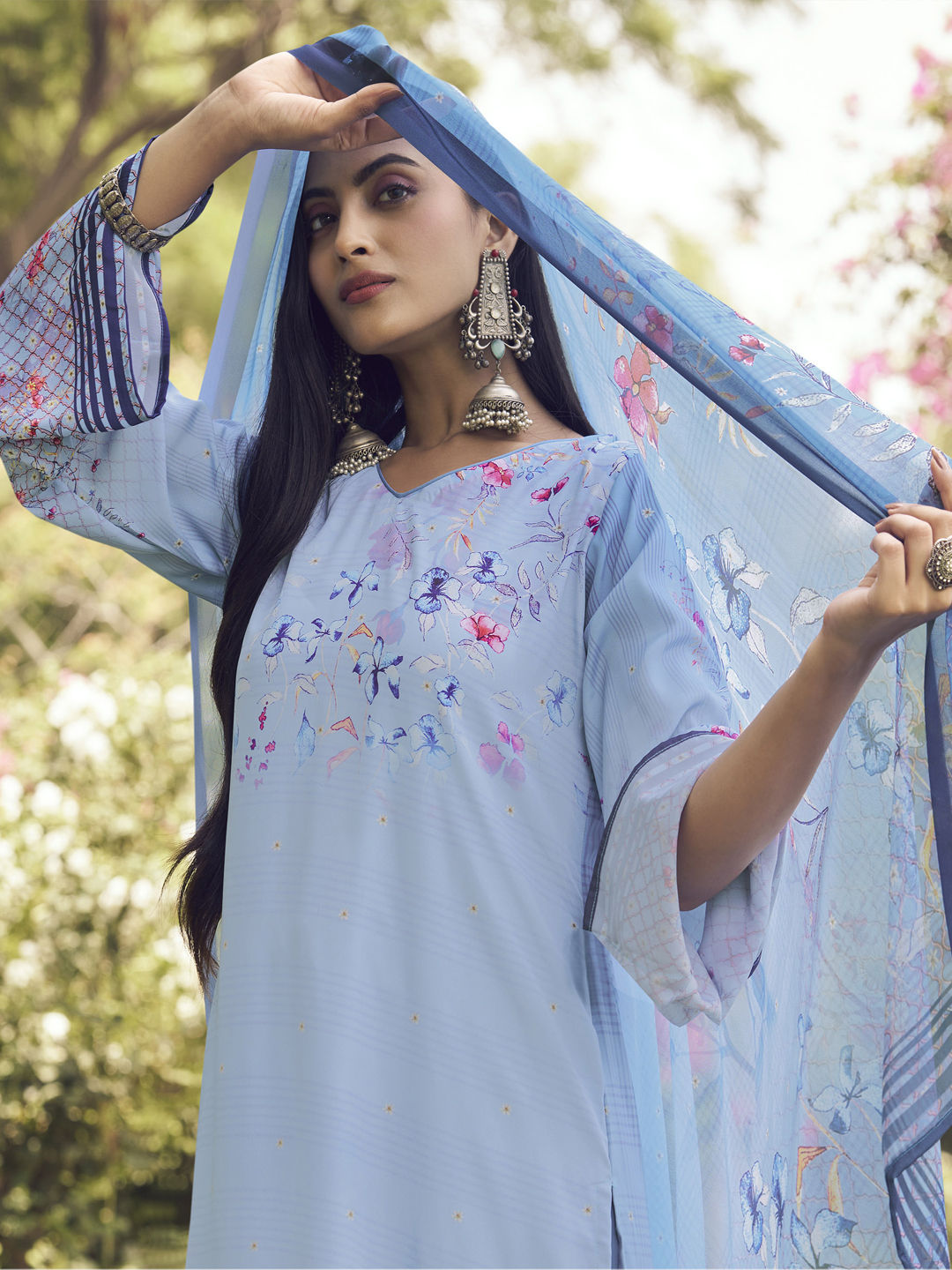 Blue color Salwar Kameez in Crepe Silk fabric with Floral, Printed work