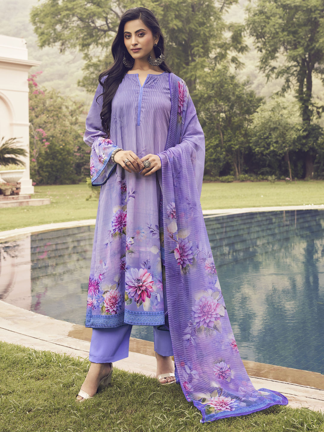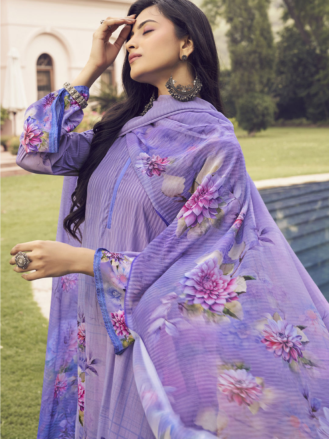 Purple and Violet color Salwar Kameez in Crepe Silk fabric with Floral, Printed work
