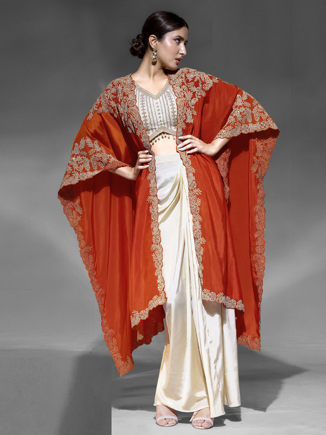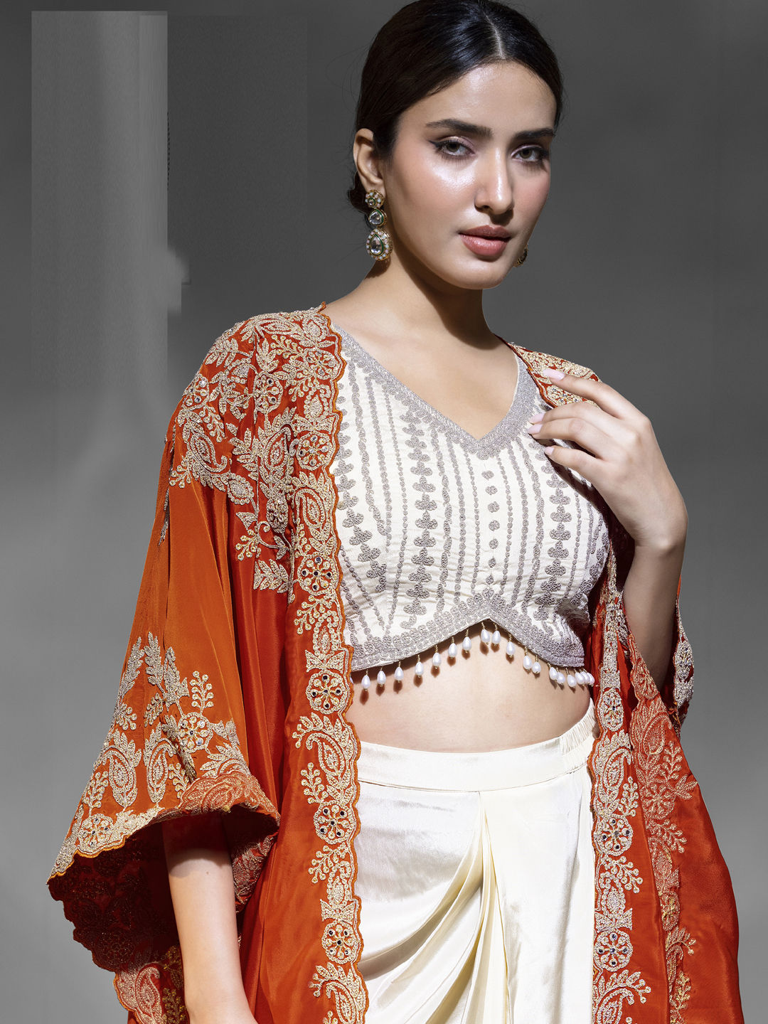 Beige and Brown, White and Off White color Long Lehenga Choli in Crepe Silk fabric with Embroidered, Mirror, Sequence work