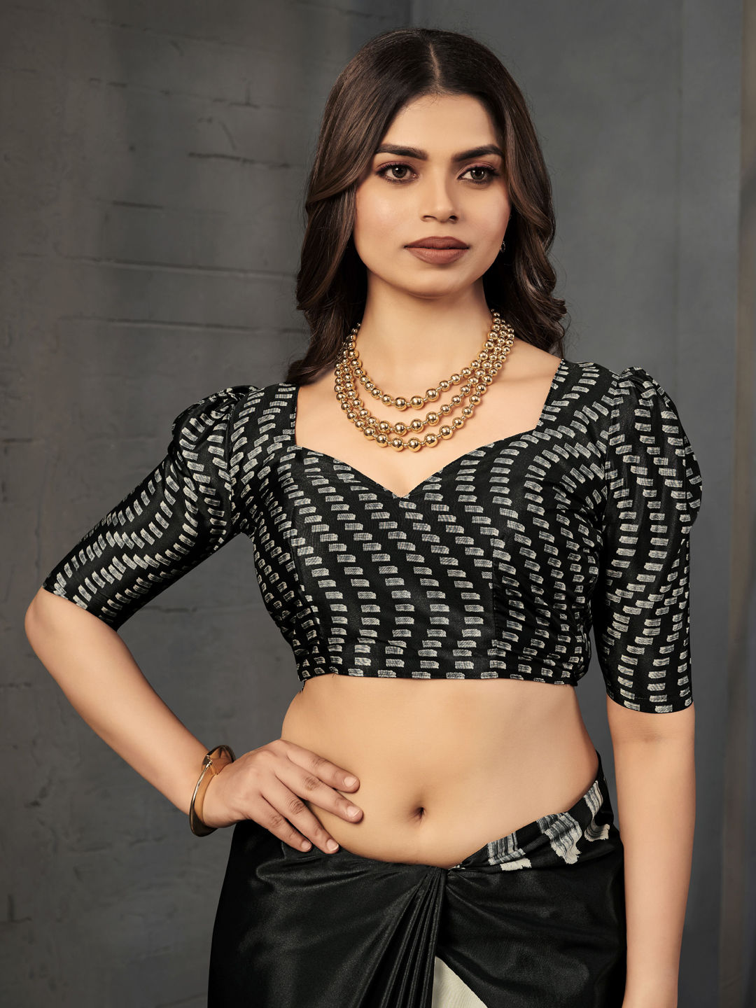 Crepe Silk Festive Saree in Black and Grey with Digital Print work