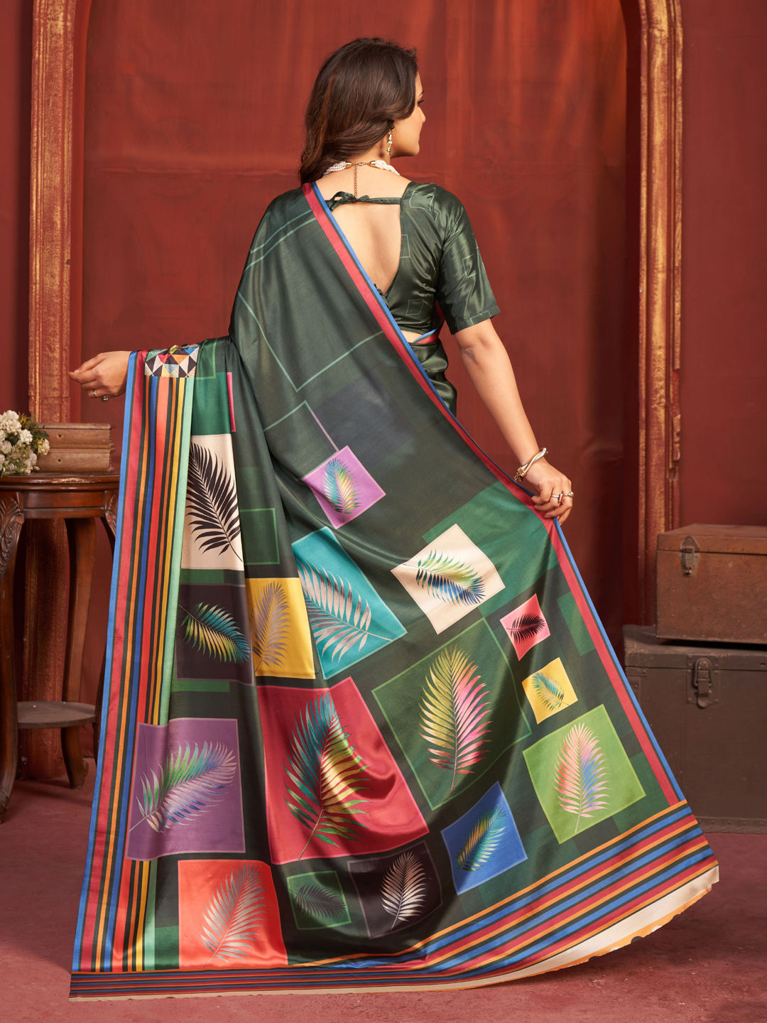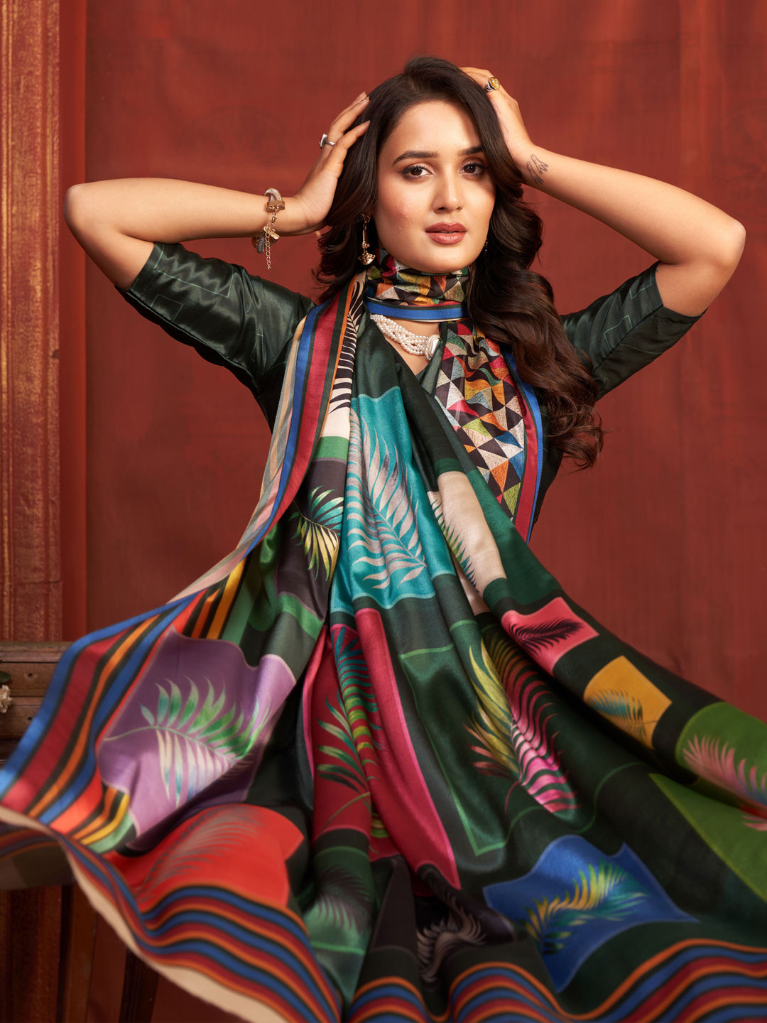 Crepe Silk Traditional Saree in Black and Grey with Digital Print work