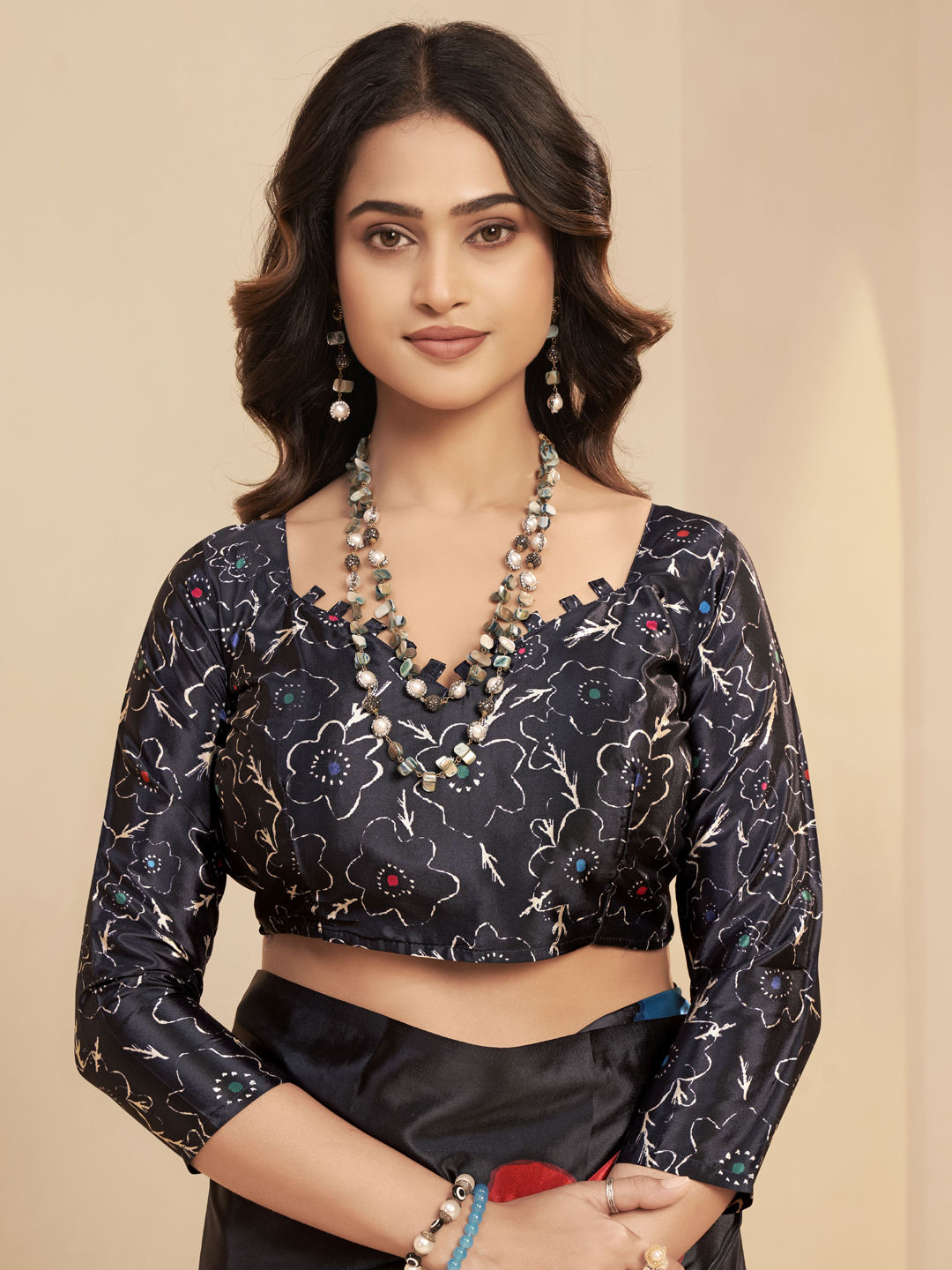 Crepe Silk Festive Saree in Black and Grey with Digital Print work