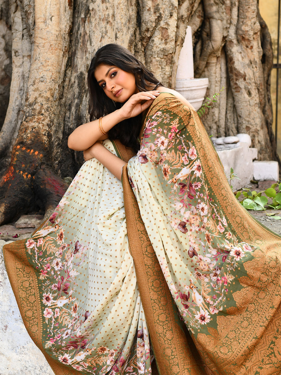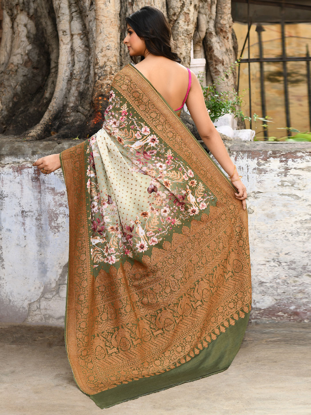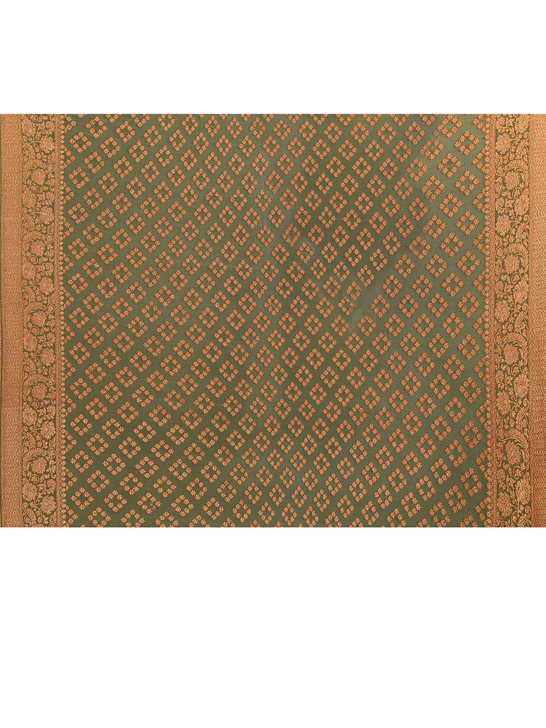 Green color Saree in Crepe Silk fabric with Border, Zari work