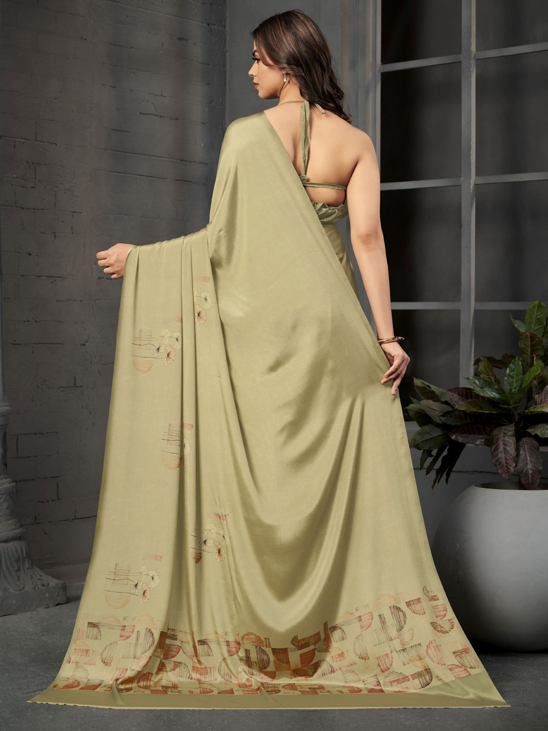 Green color Saree in Crepe Silk fabric with Digital Print work