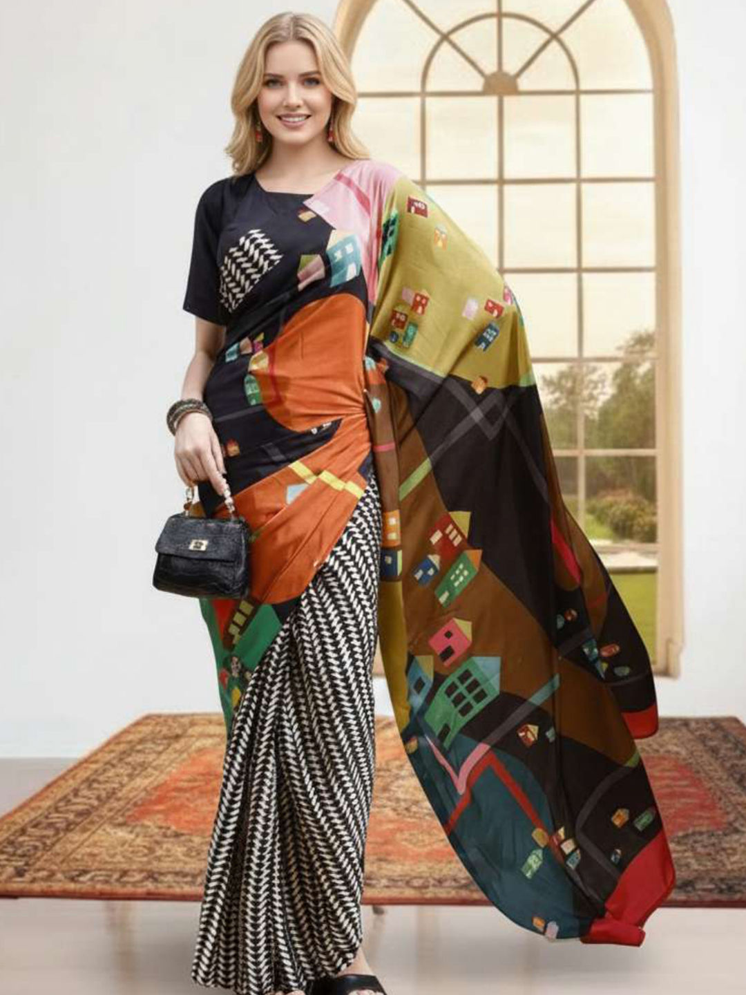 Multicolor color Saree in Crepe Silk fabric with Digital Print work
