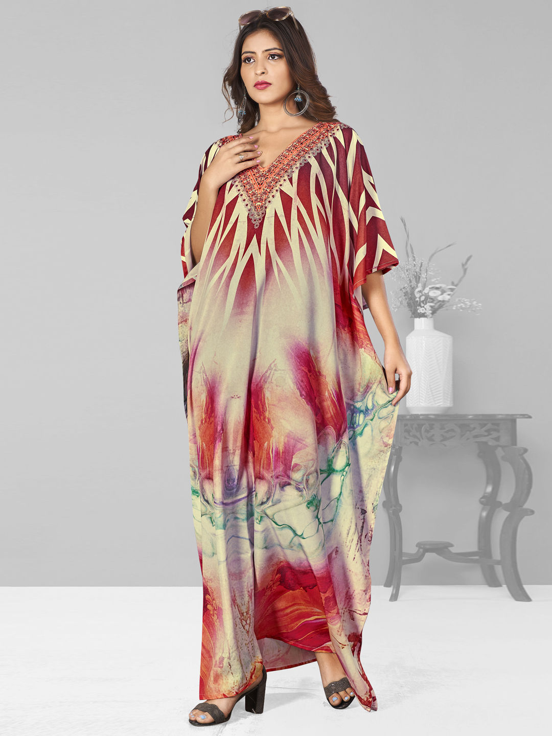 Multicolor color Kaftan in Crepe Silk fabric with Digital Print, Stone work