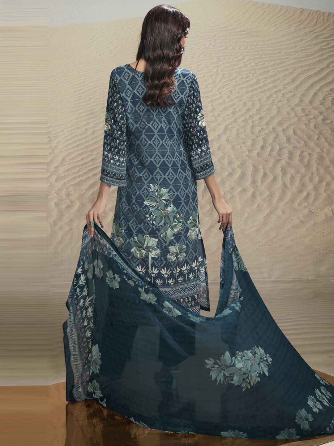 Crepe Silk Party Wear Salwar Kameez in Blue with Digital Print work