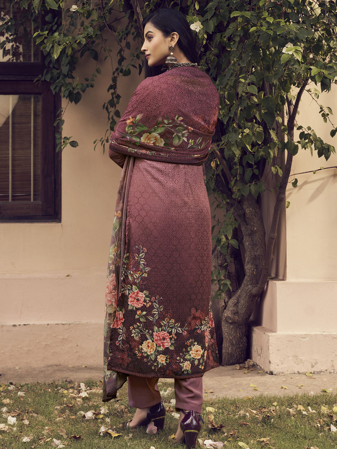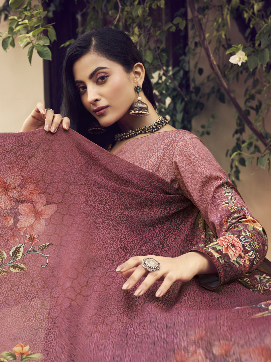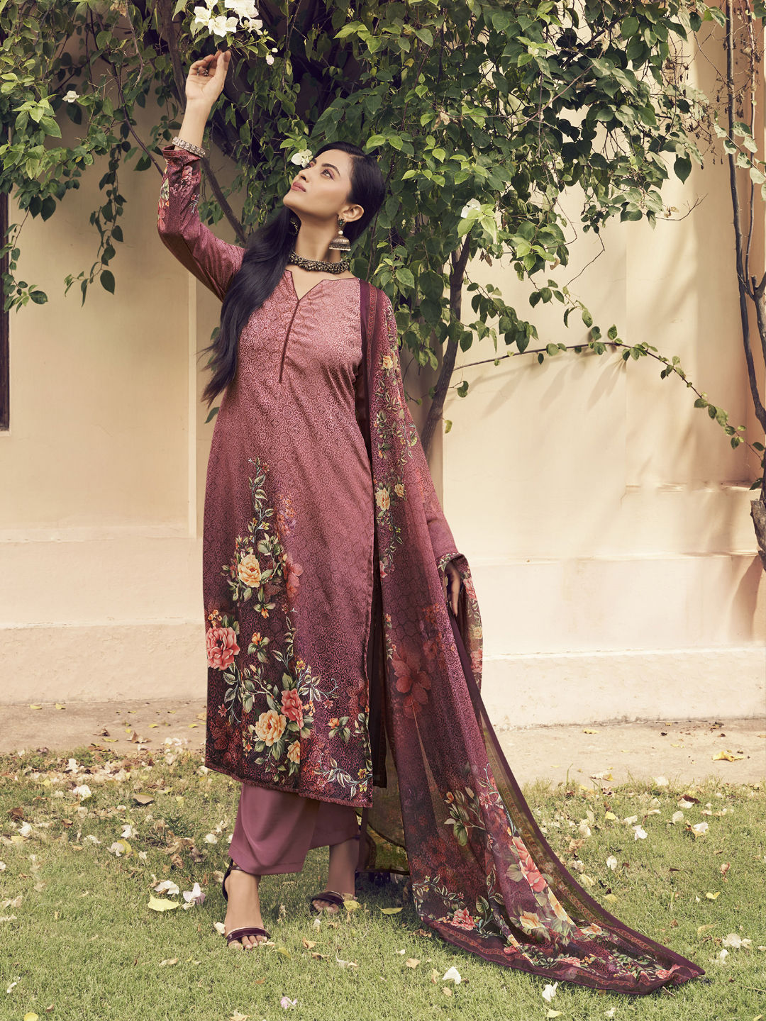 Crepe Silk Casual Salwar Kameez in Purple and Violet with Floral work