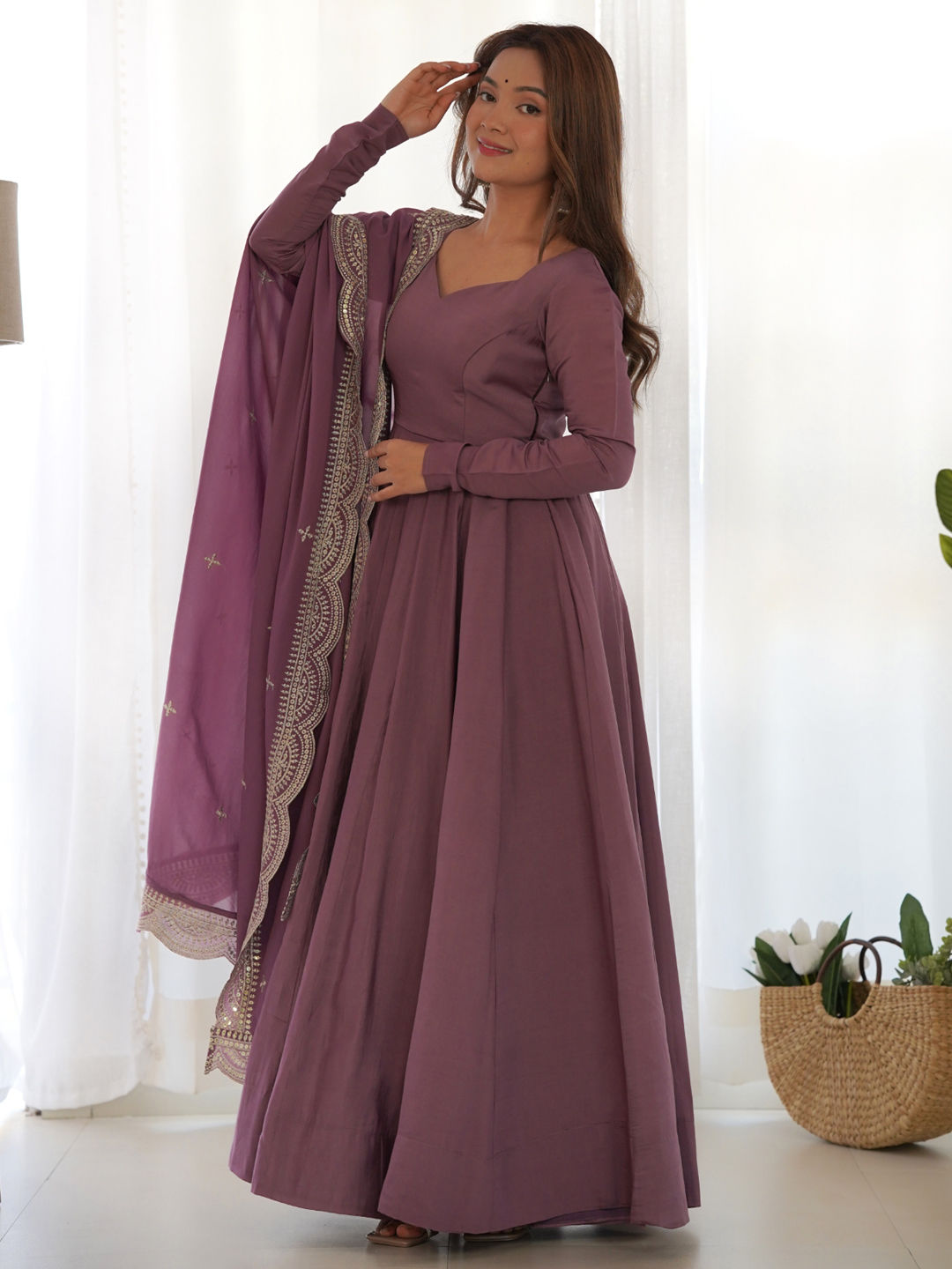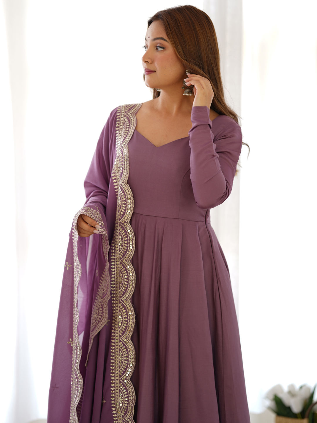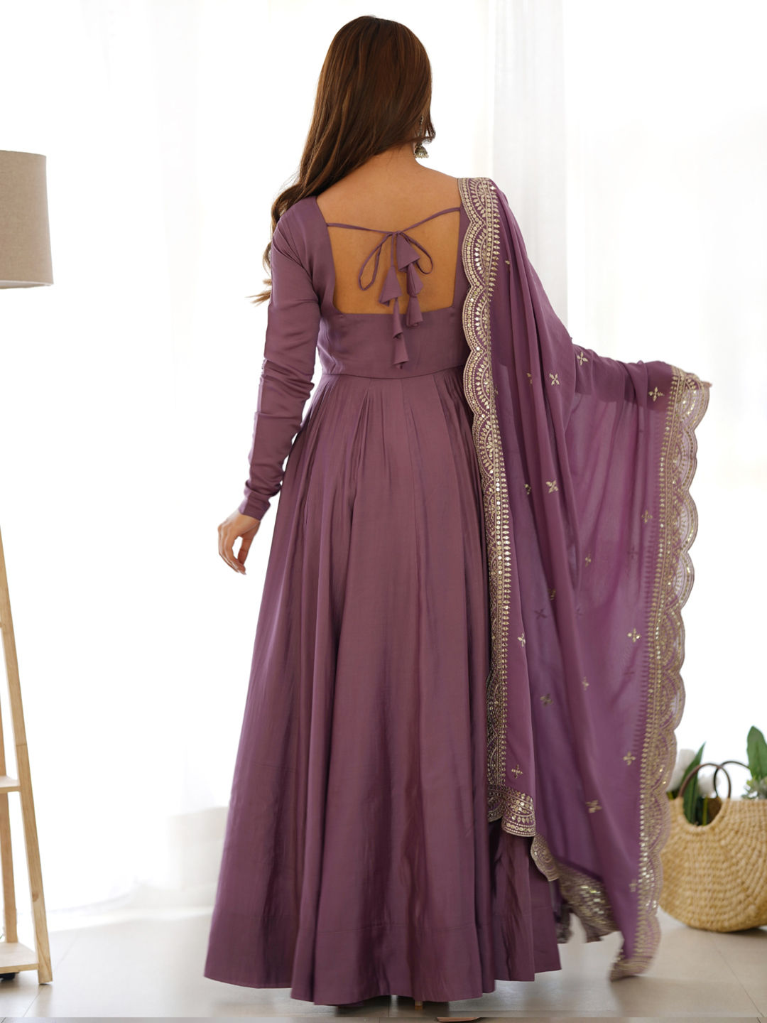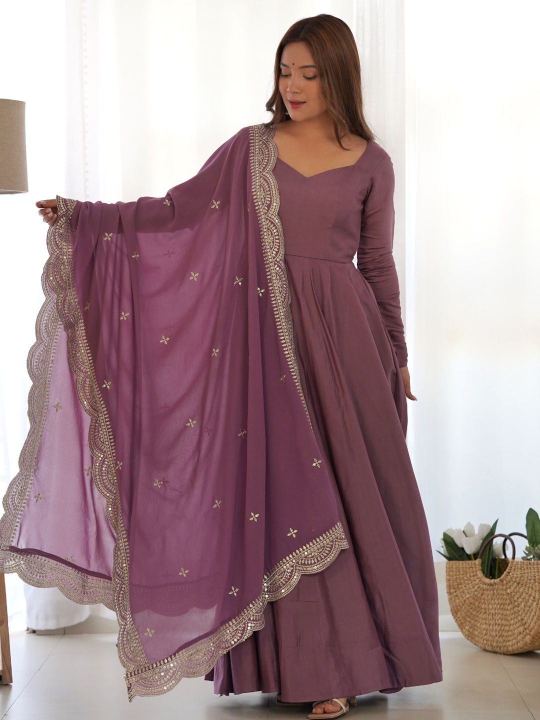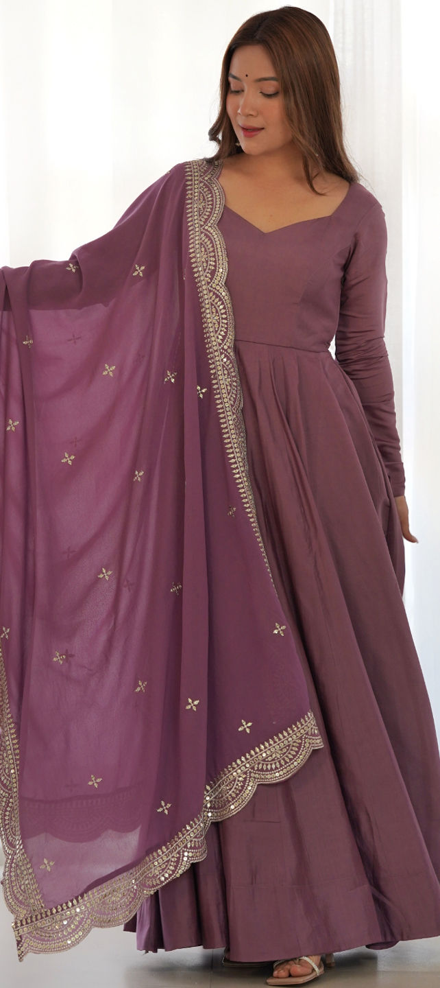 Purple and Violet color Salwar Kameez in Crepe Silk fabric with Sequence work