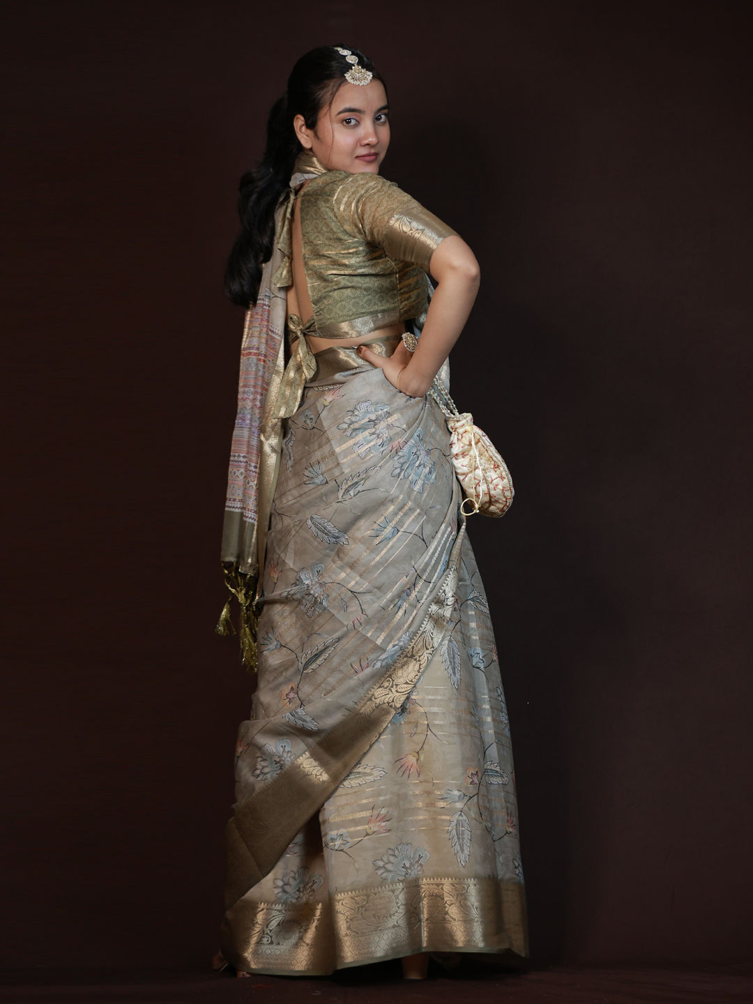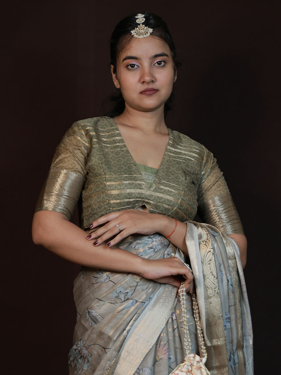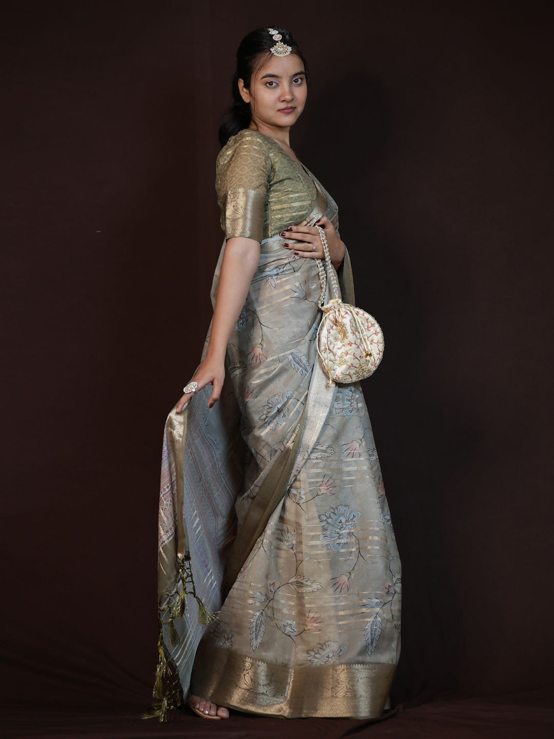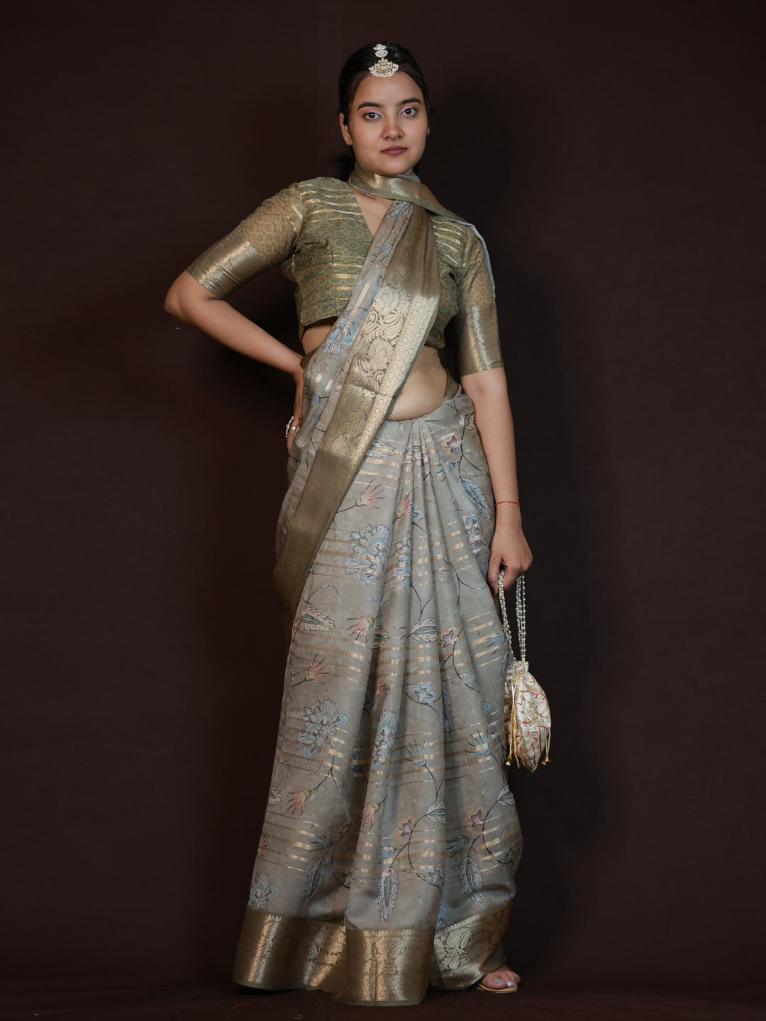 Green color Saree in Crepe Silk fabric with Floral, Printed work