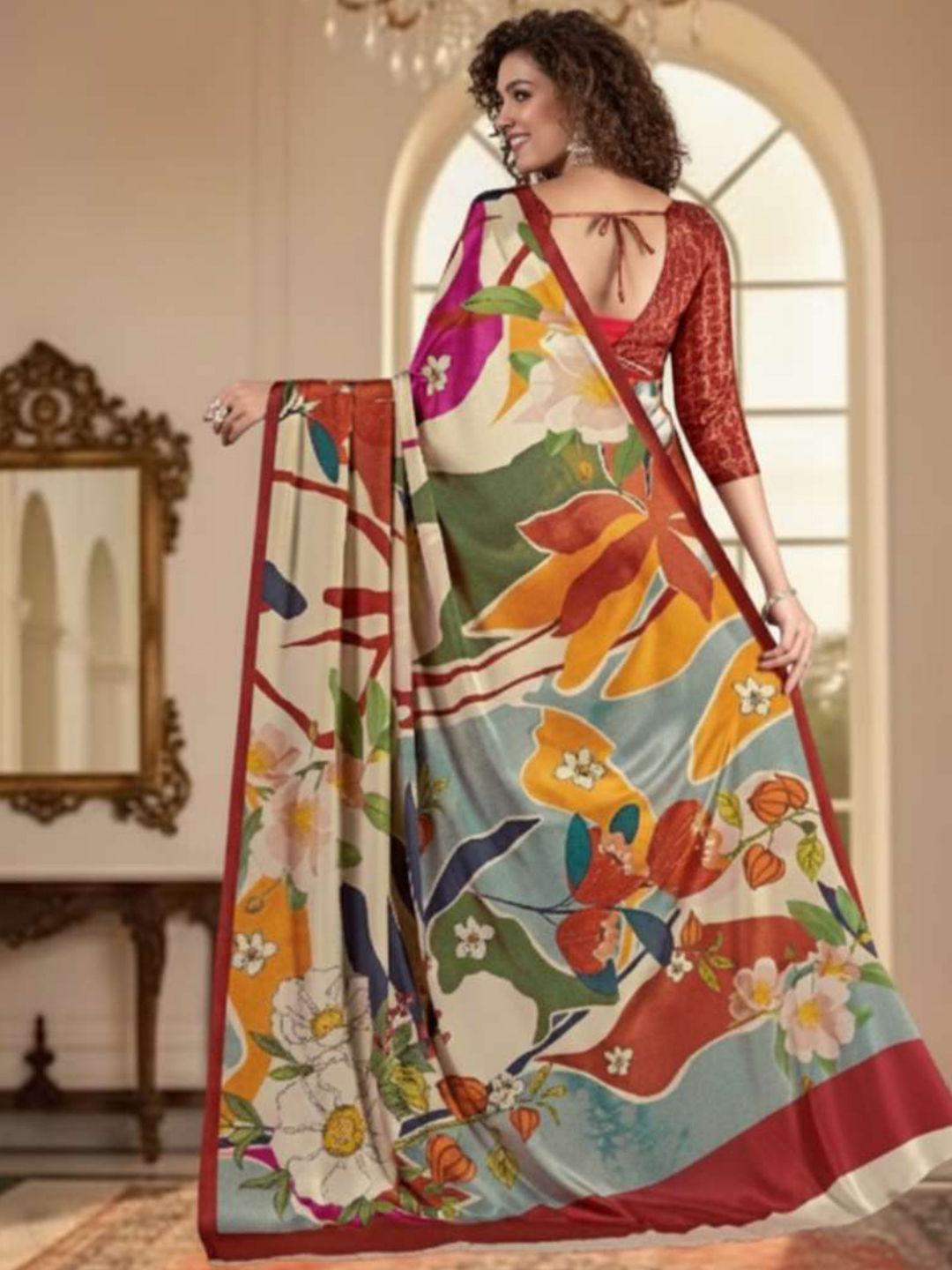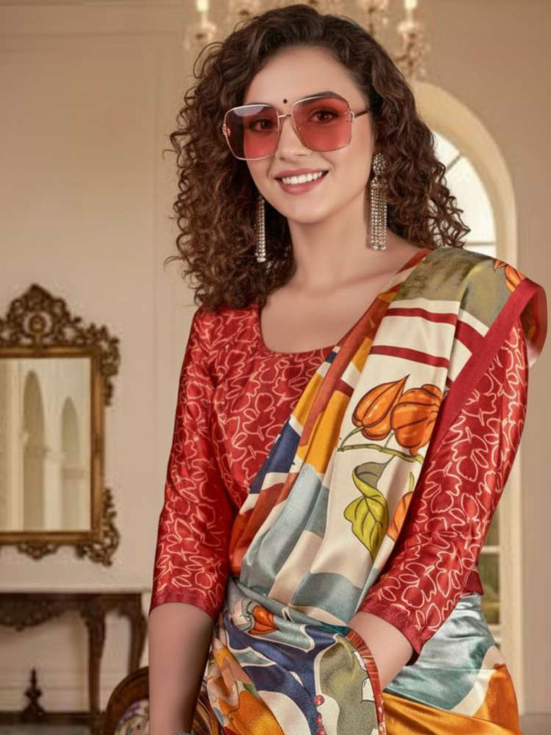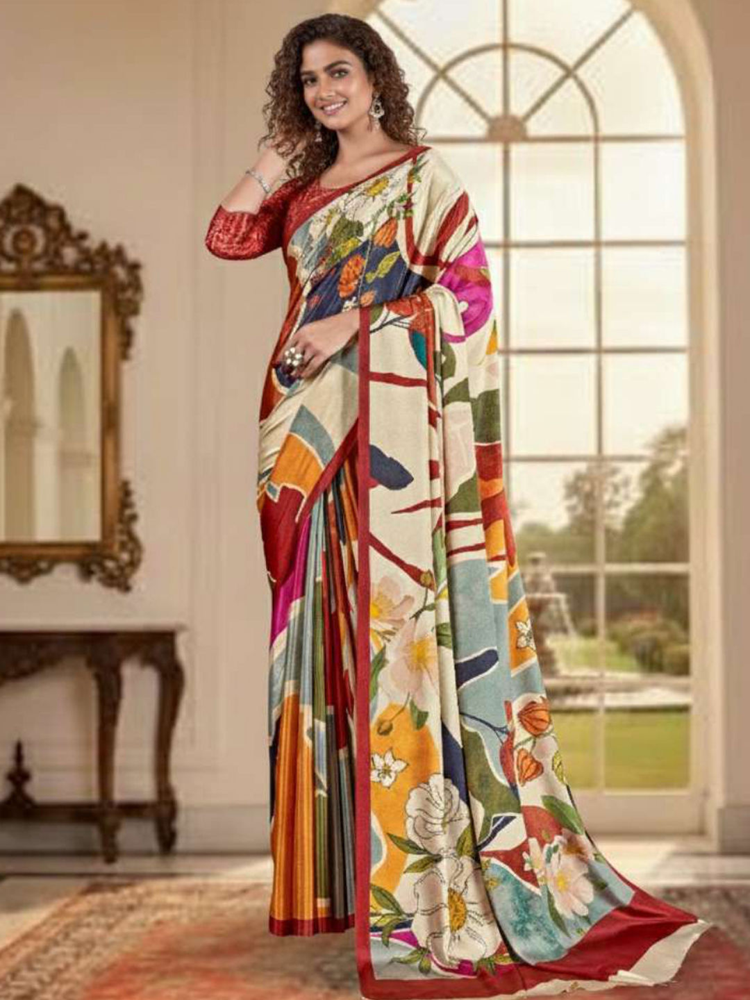 Multicolor color Saree in Crepe Silk fabric with Digital Print work