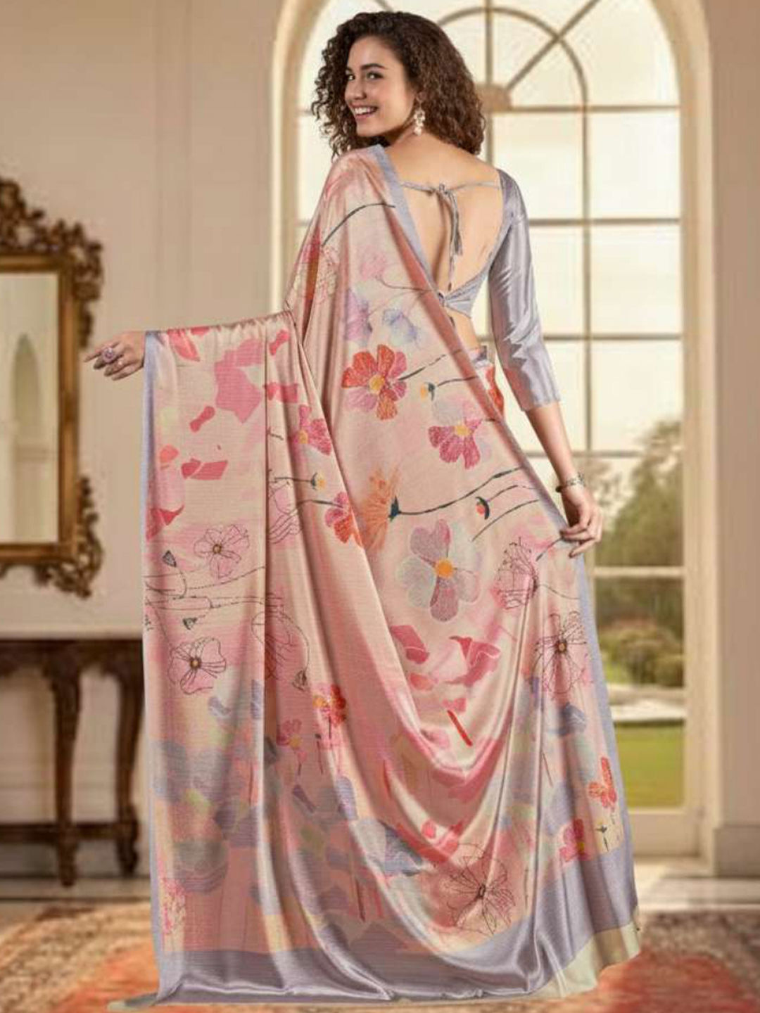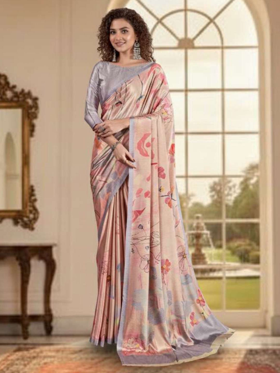 Crepe Silk Party Wear Saree in Multicolor with Digital Print work