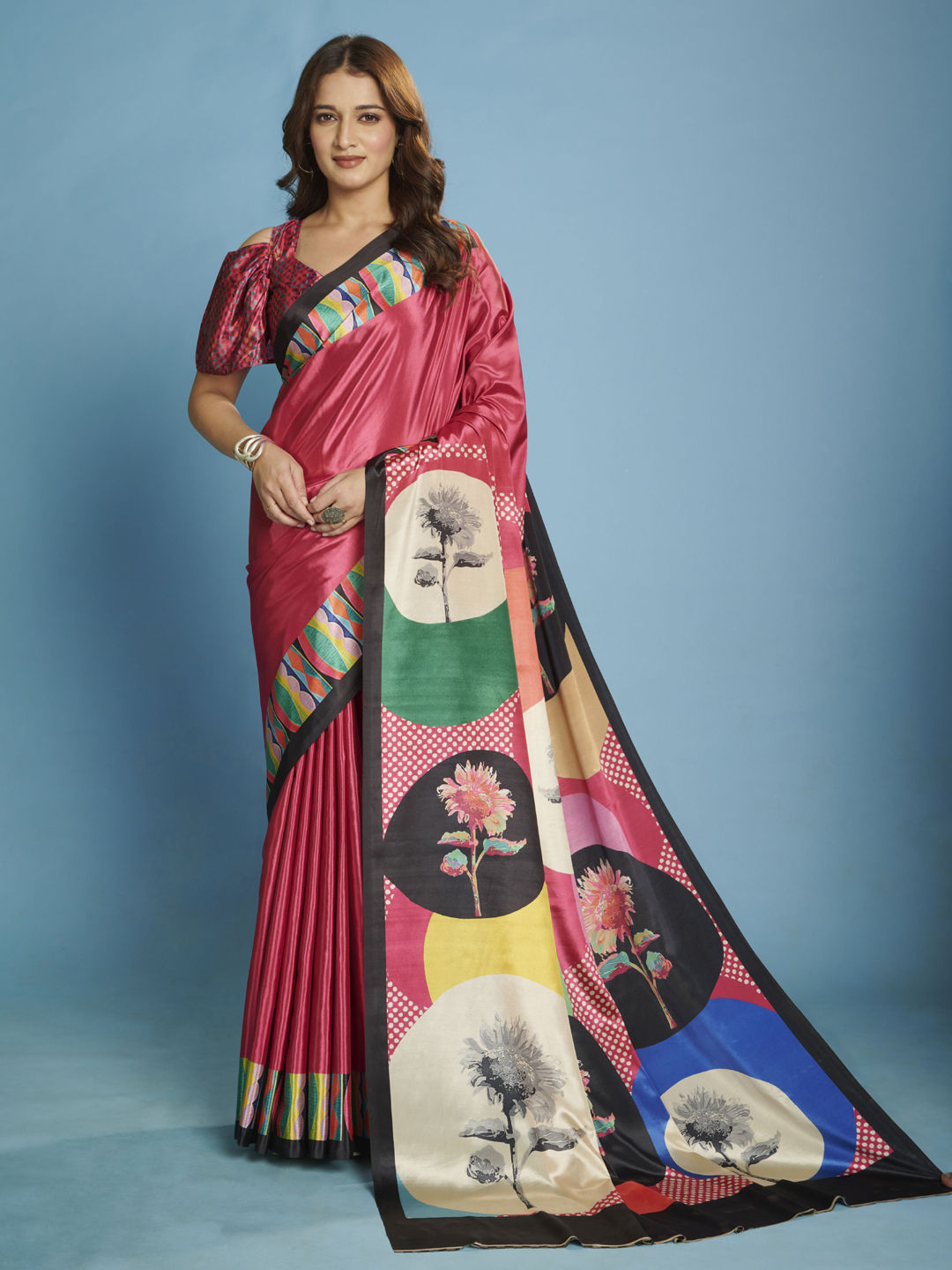 in Pink and Majenta with Digital Print work