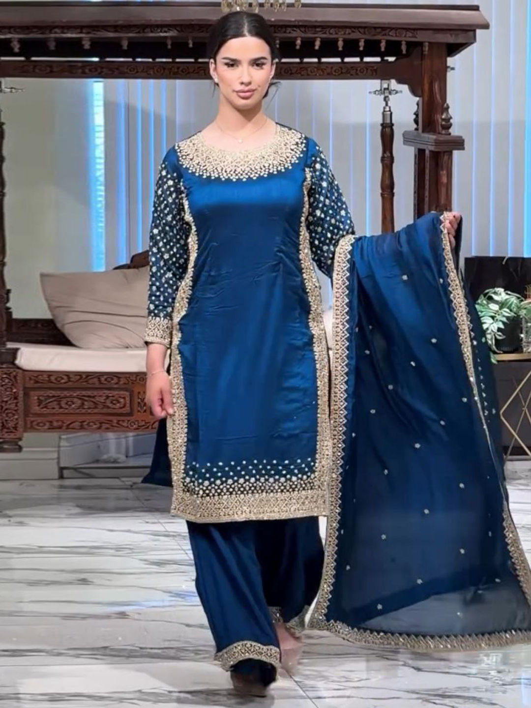 Blue color Salwar Kameez in Crepe Silk fabric with Embroidered, Sequence, Thread work