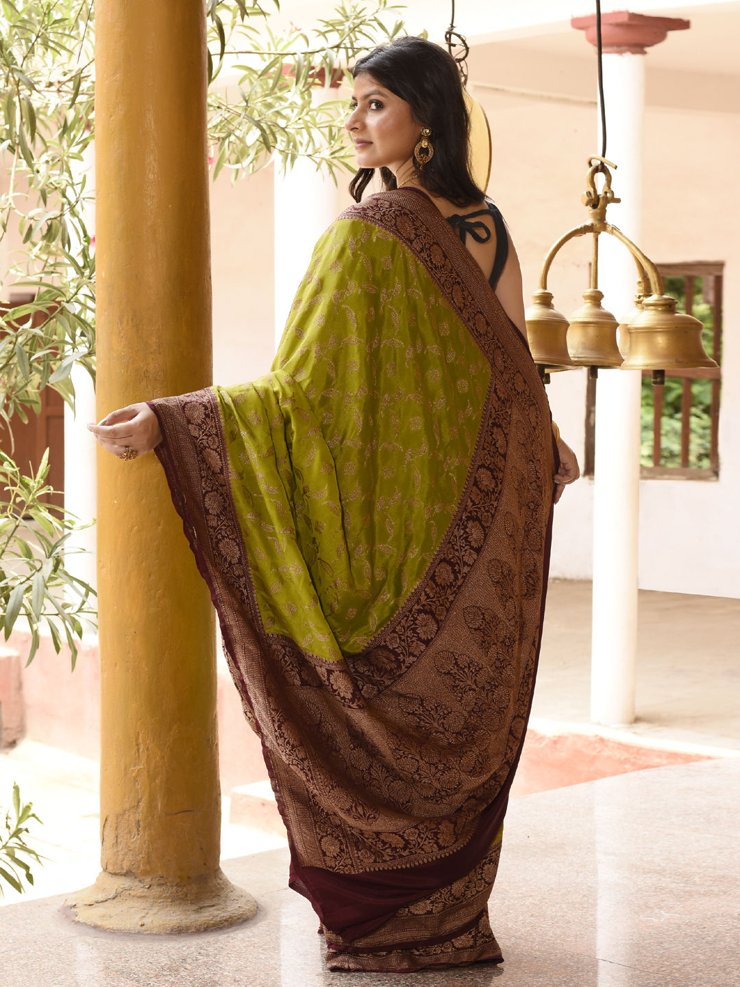 Green color Saree in Chiffon, Crepe Silk fabric with Border, Zari work
