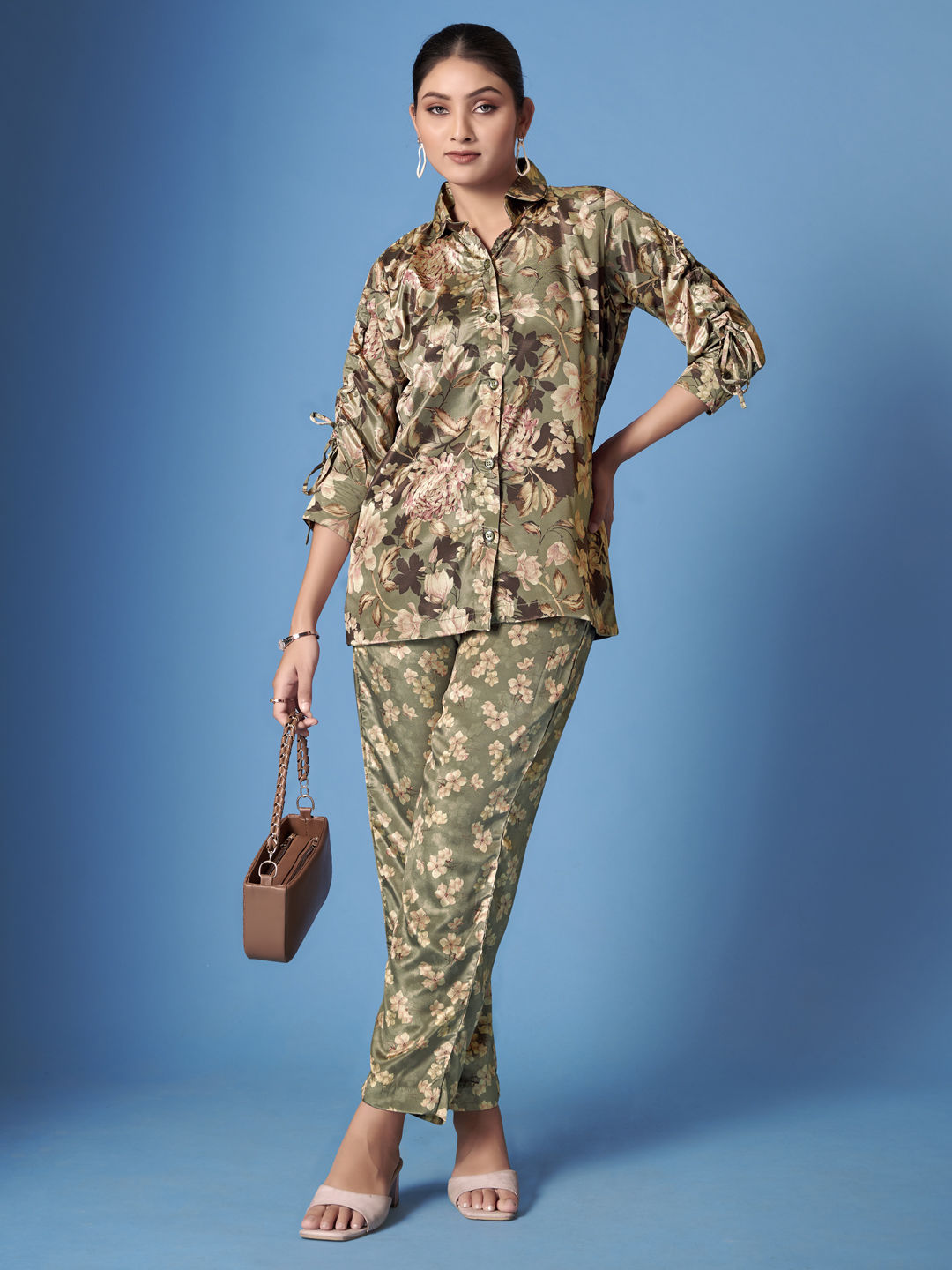 Crepe Silk Summer Co-ords Set in Multicolor with Floral work