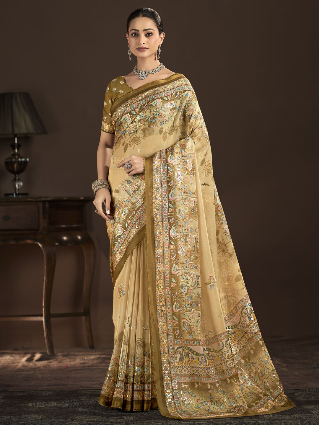 in Beige and Brown with Foil Print work