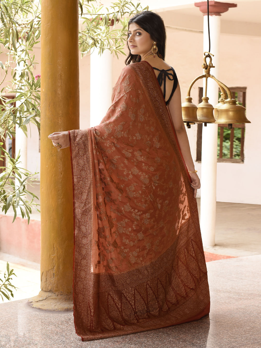 Beige and Brown color Saree in Chiffon, Crepe Silk fabric with Border, Zari work