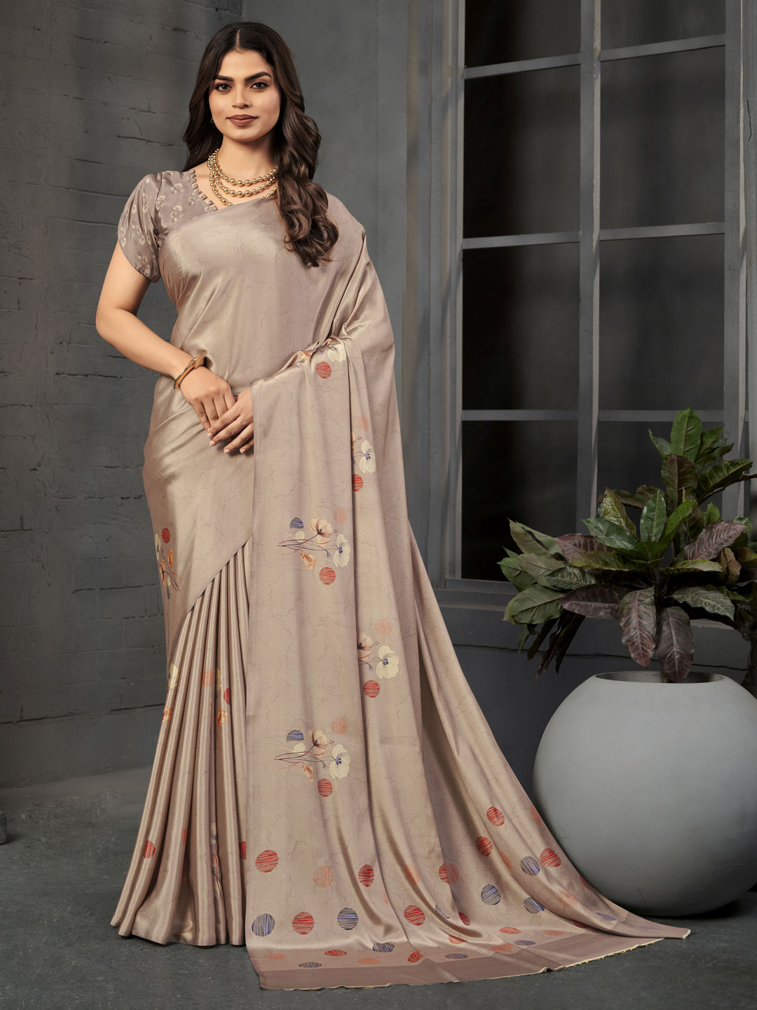 Crepe Silk Festive Saree in Black and Grey with Digital Print work