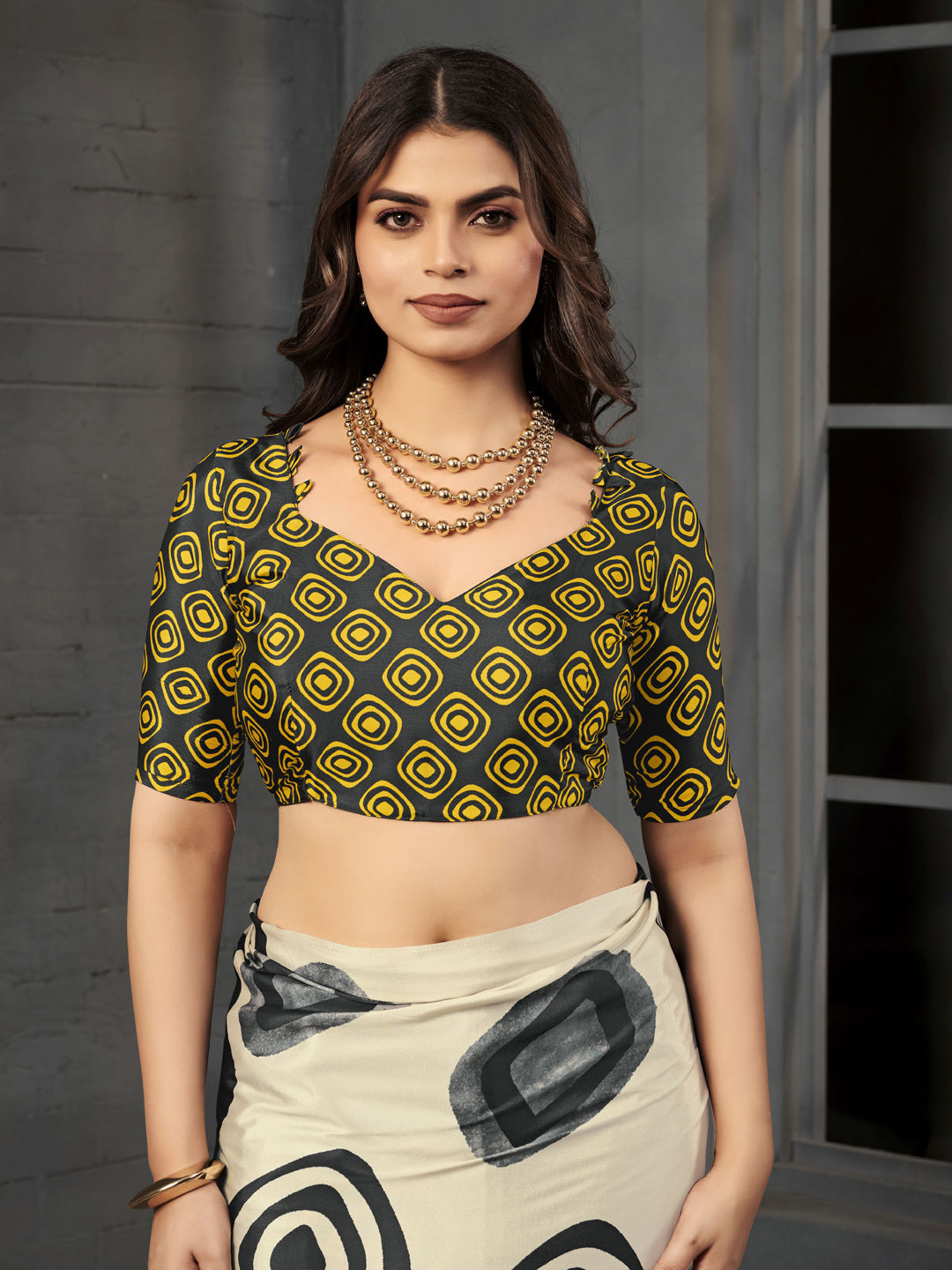 Crepe Silk Traditional Saree in Black and Grey with Digital Print work