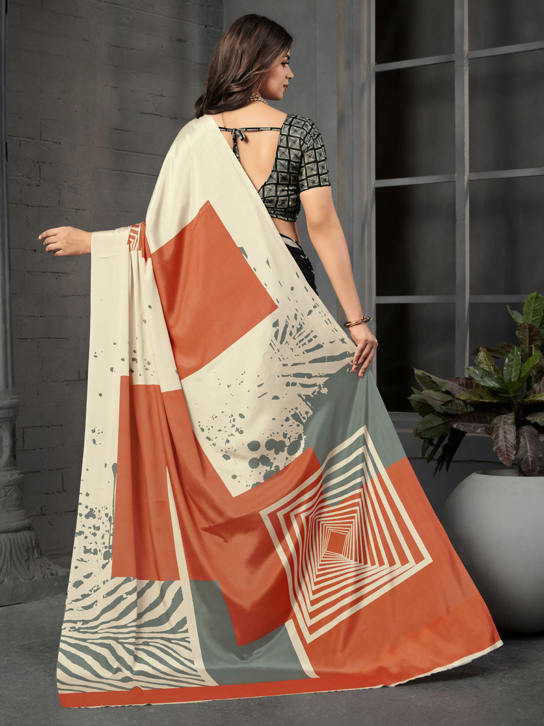 Crepe Silk Festive Saree in Black and Grey with Digital Print work