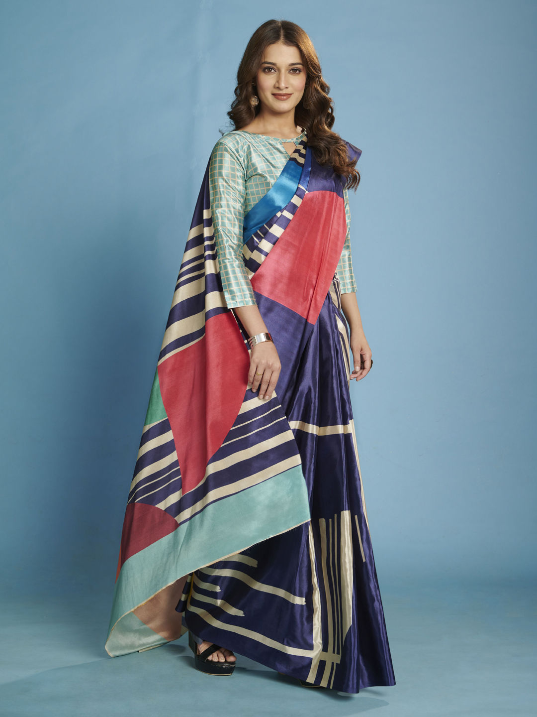 Blue color Saree in Crepe Silk fabric with Digital Print work