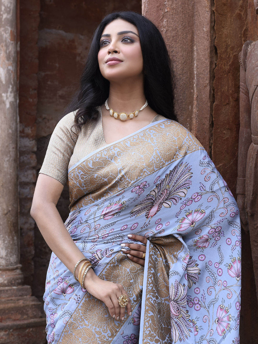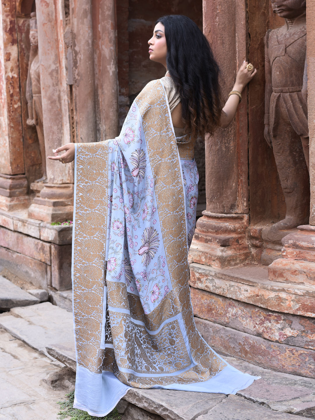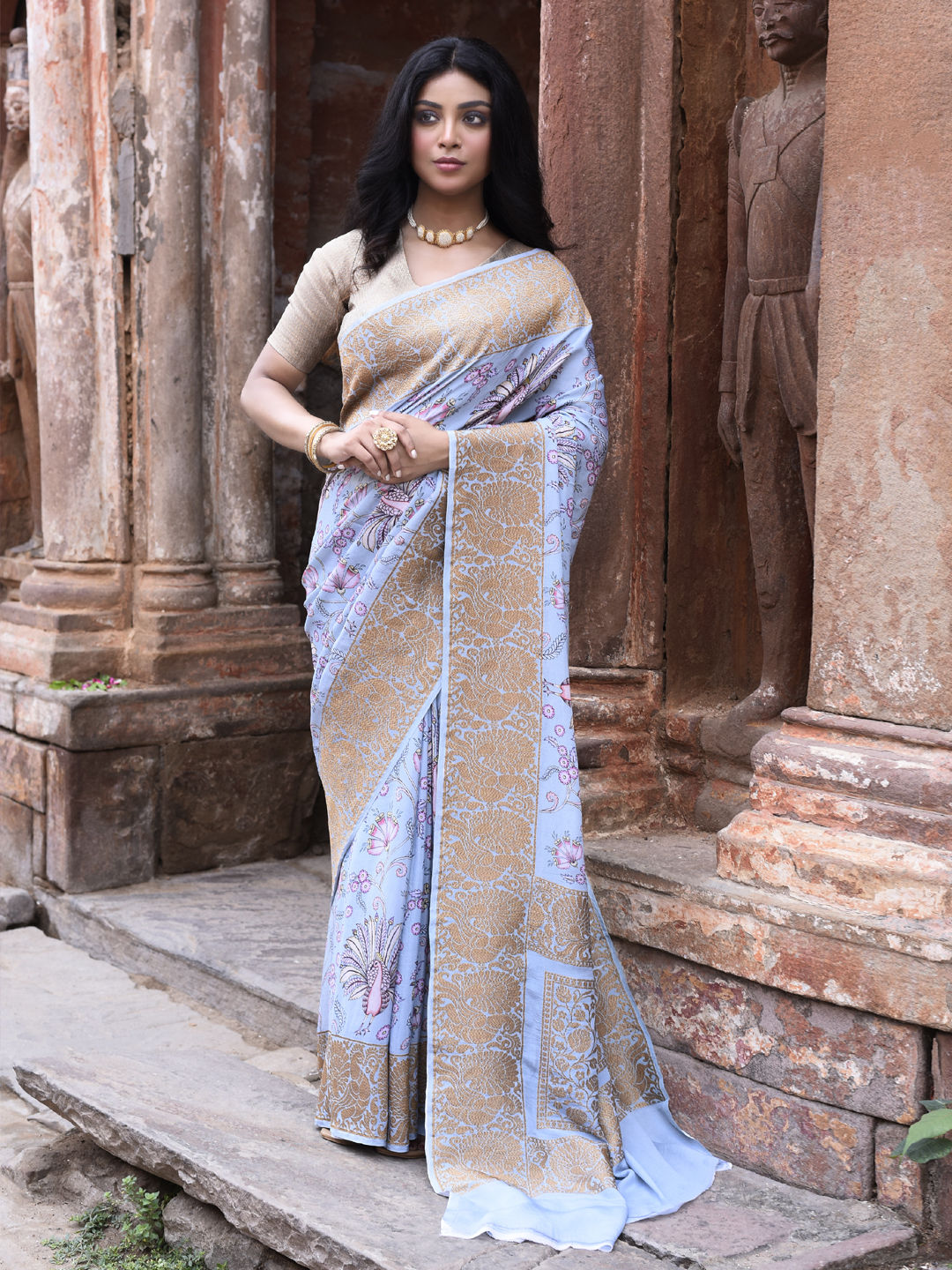 Blue color Saree in Chiffon, Crepe Silk fabric with Border, Zari work