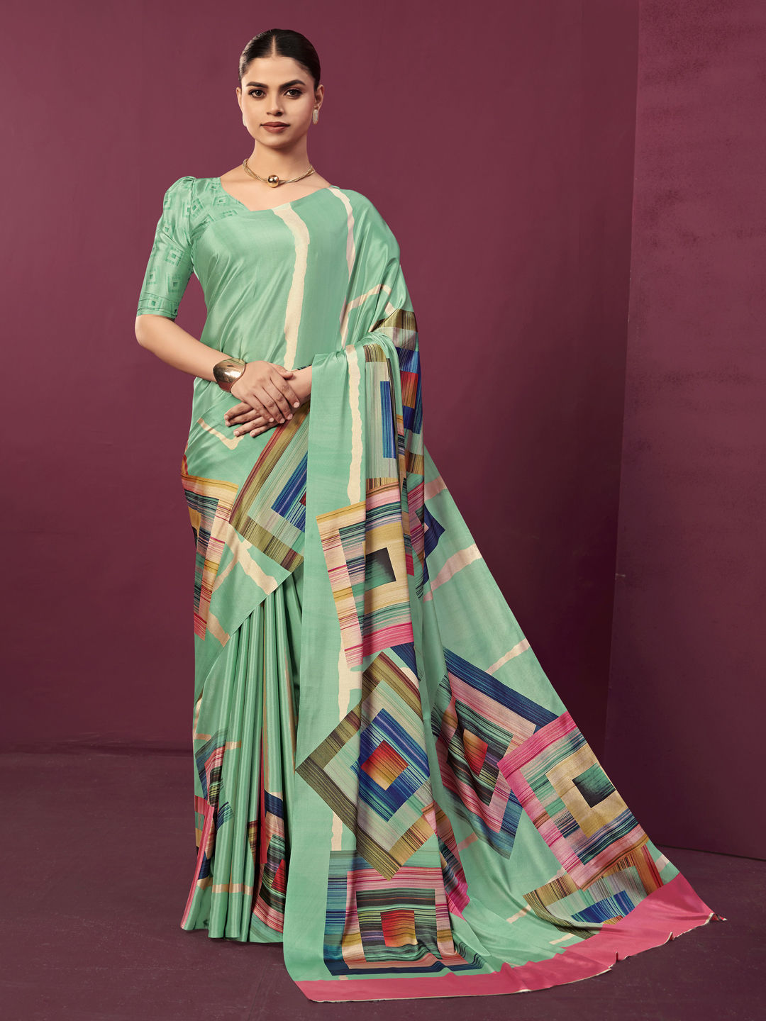 in Green with Digital Print work