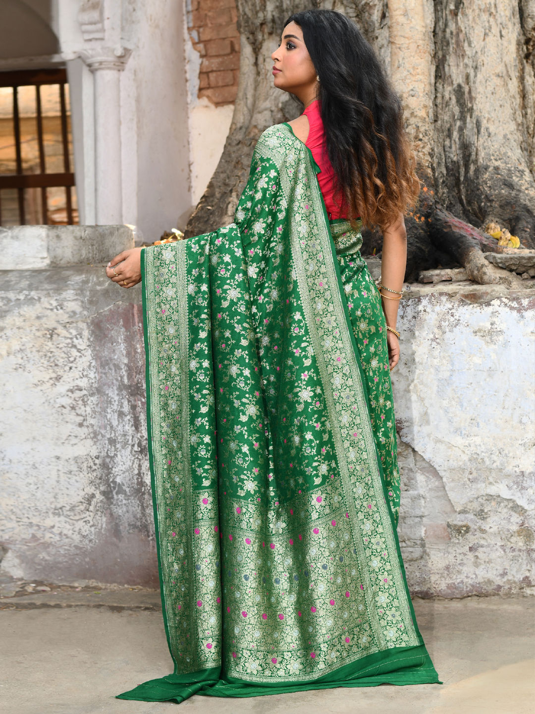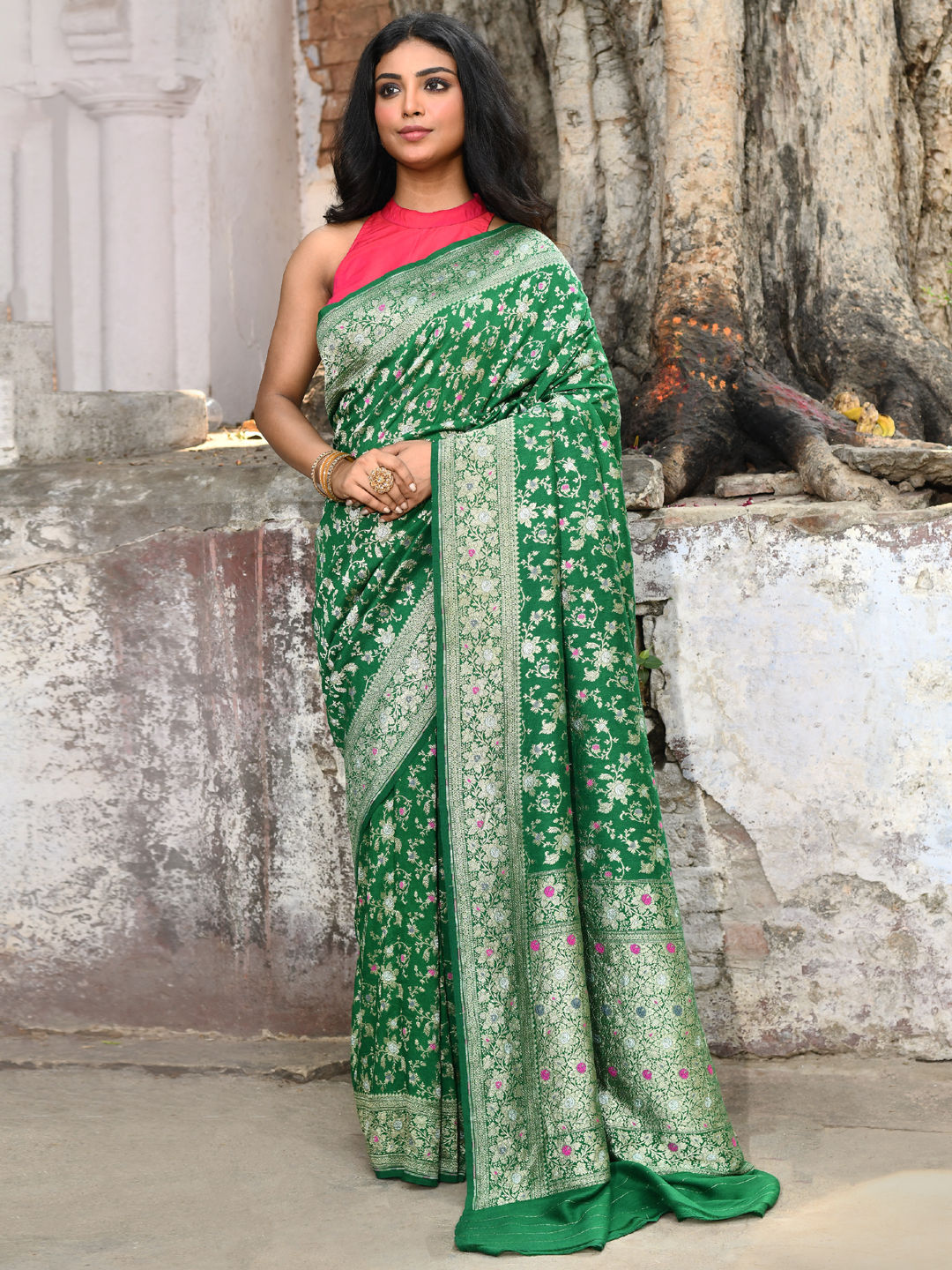 Green color Saree in Crepe Silk fabric with Border, Zari work
