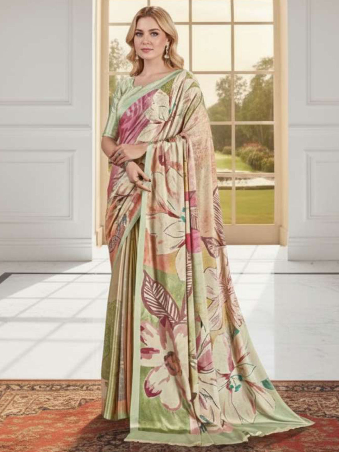 Multicolor color Saree in Crepe Silk fabric with Digital Print work