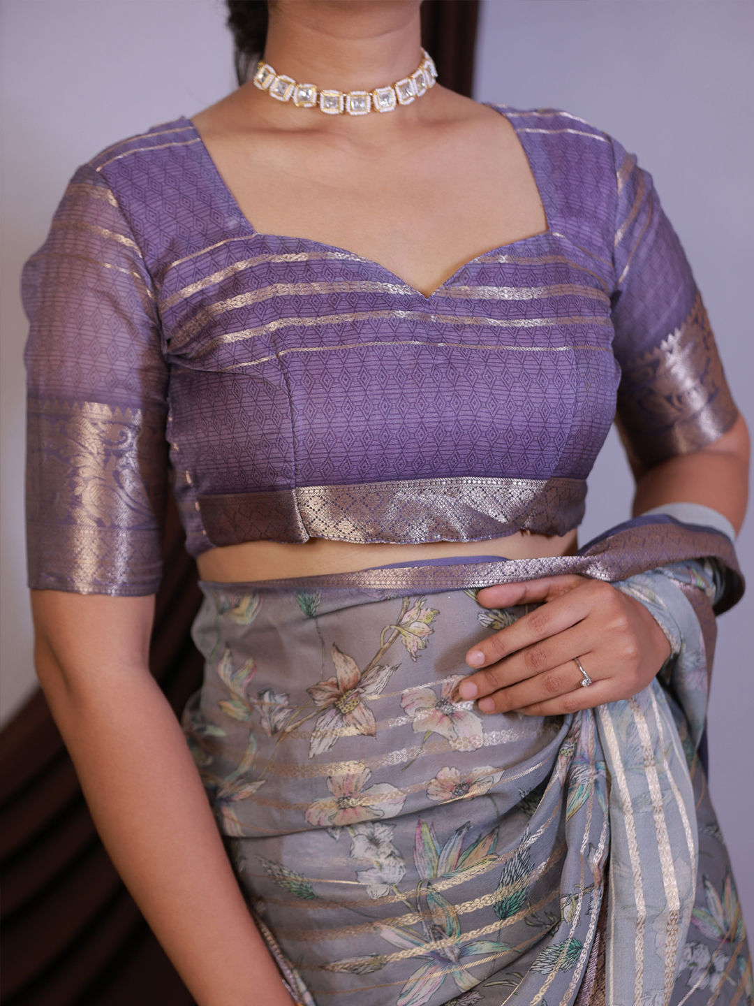 in Purple and Violet with Printed work