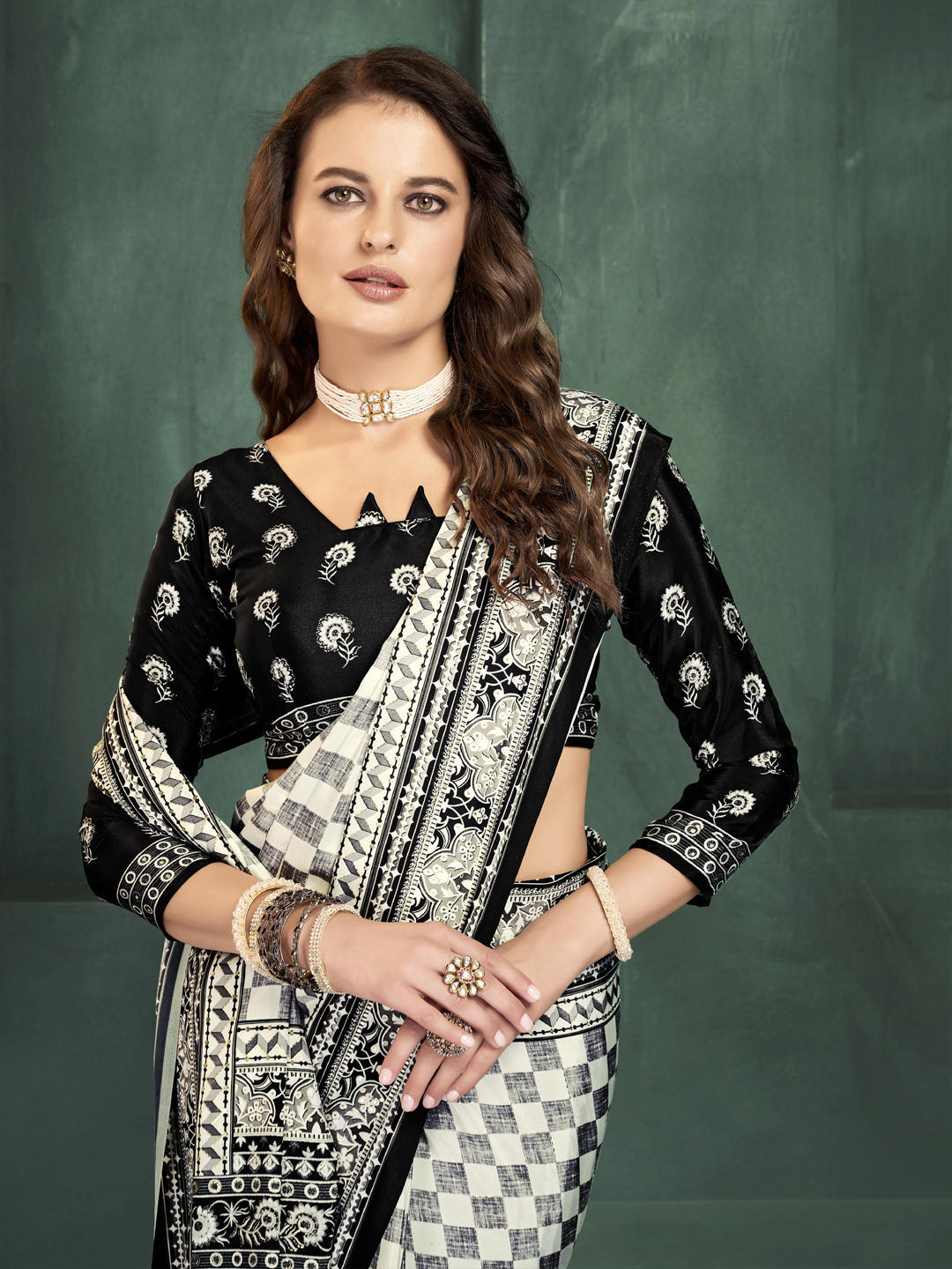 Crepe Silk Festive Saree in Black and Grey with Digital Print work