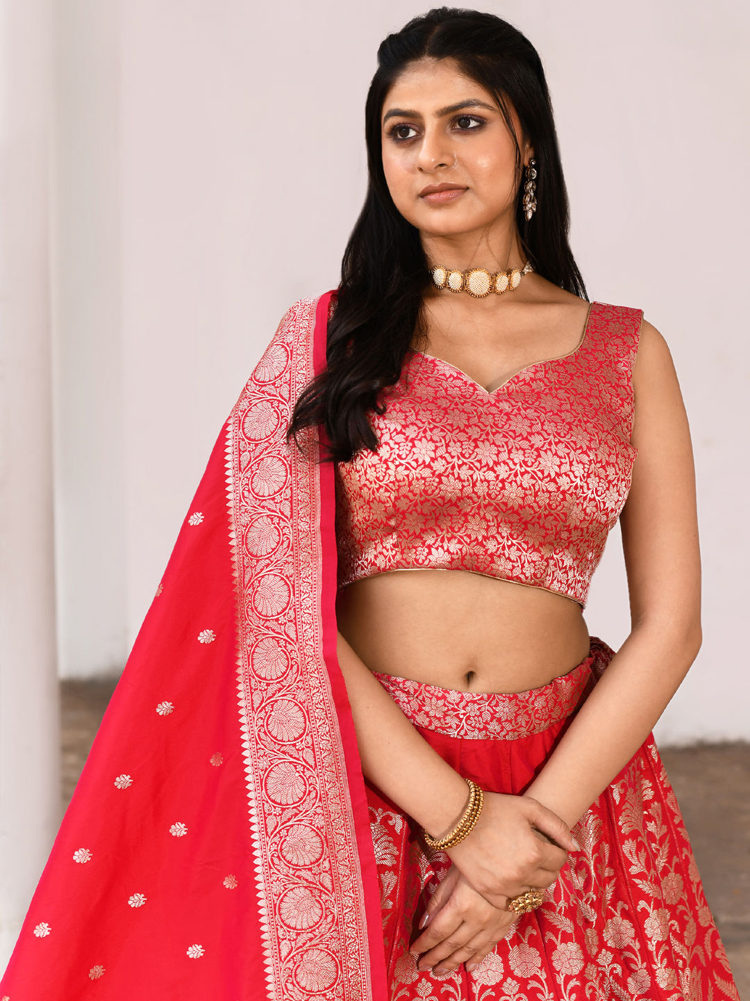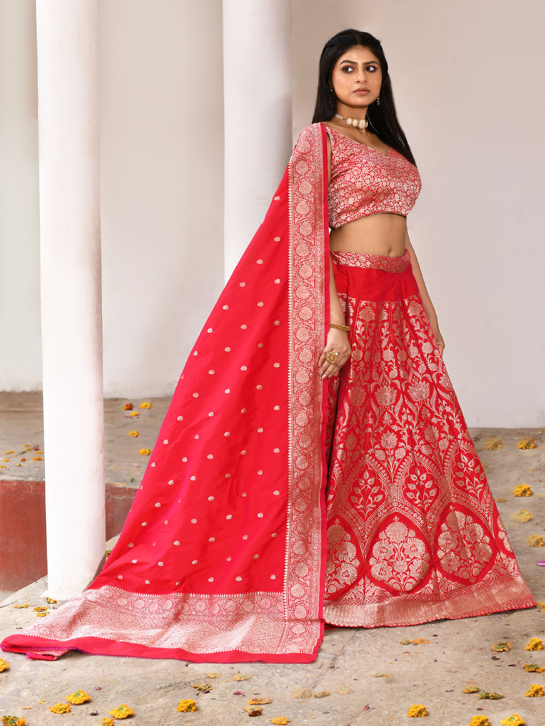 Chiffon Bridal Lehenga in Red and Maroon with Border work