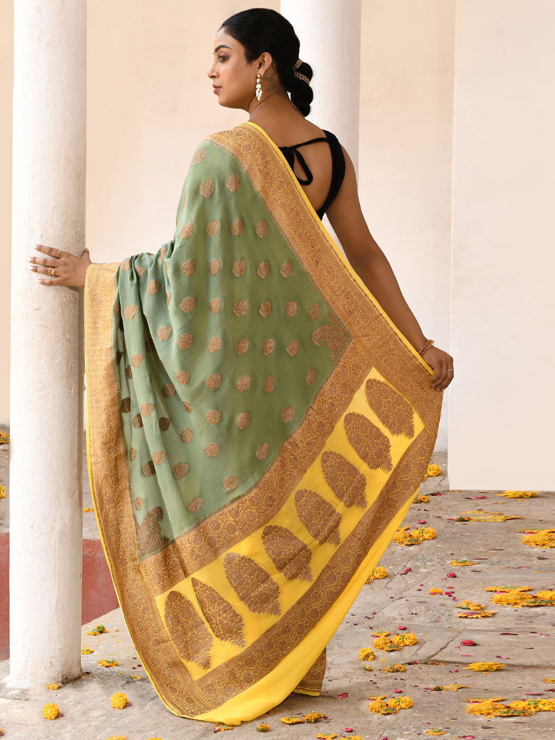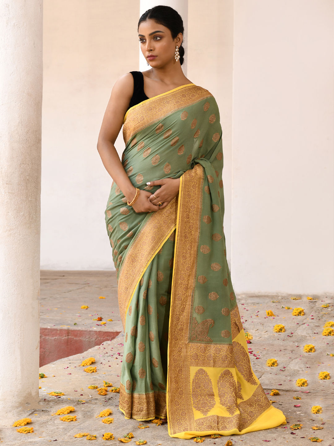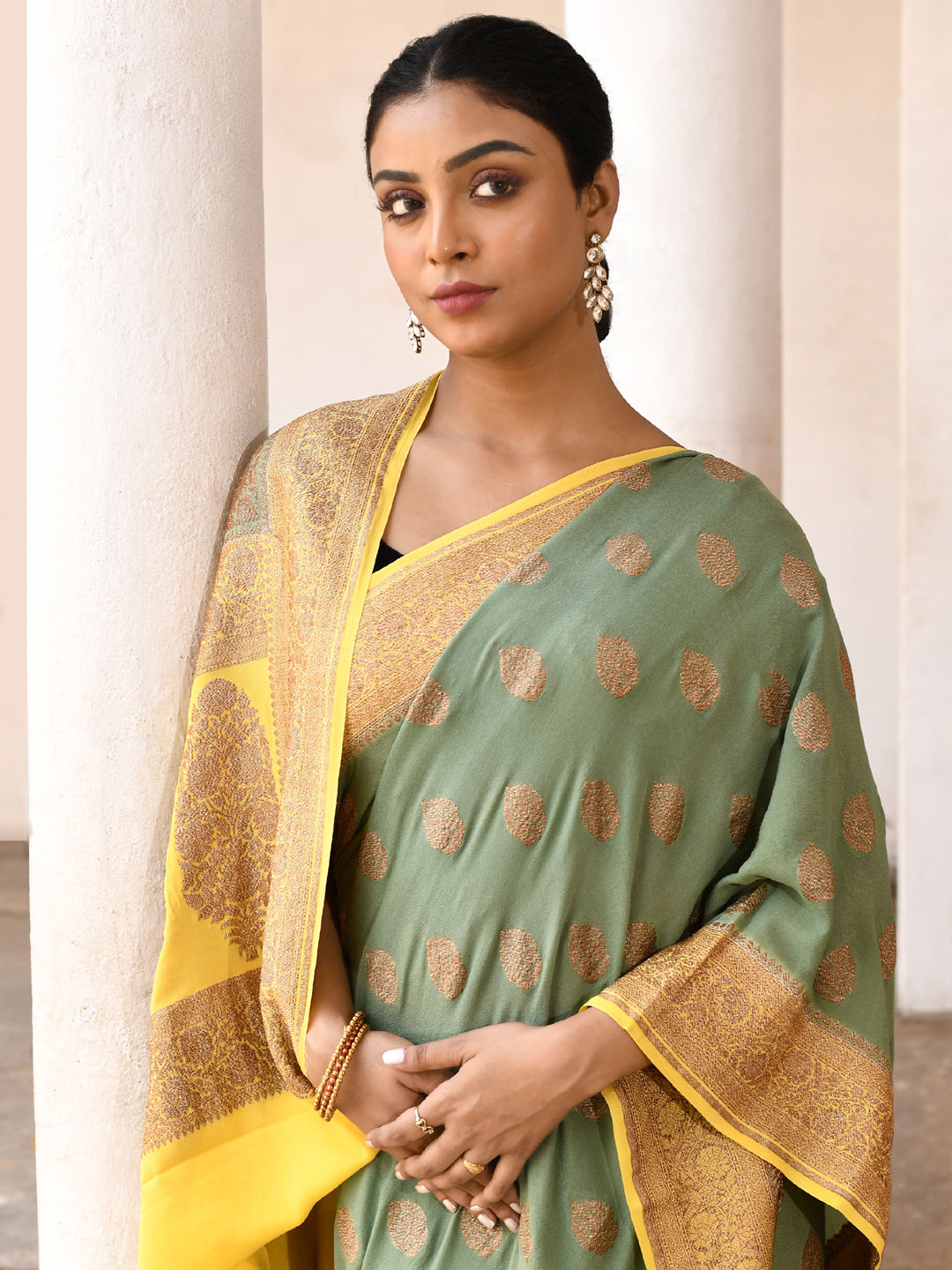 in Green with Zari work
